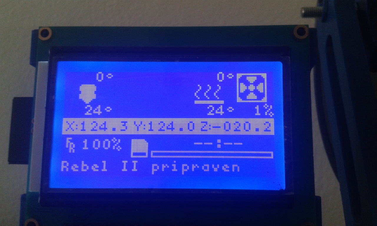 LCD k tiskárně bohužel nemáme, ale dneska se nám povedlo změnit souřadnice tisku a zase nám to tiskne v opačném rohu