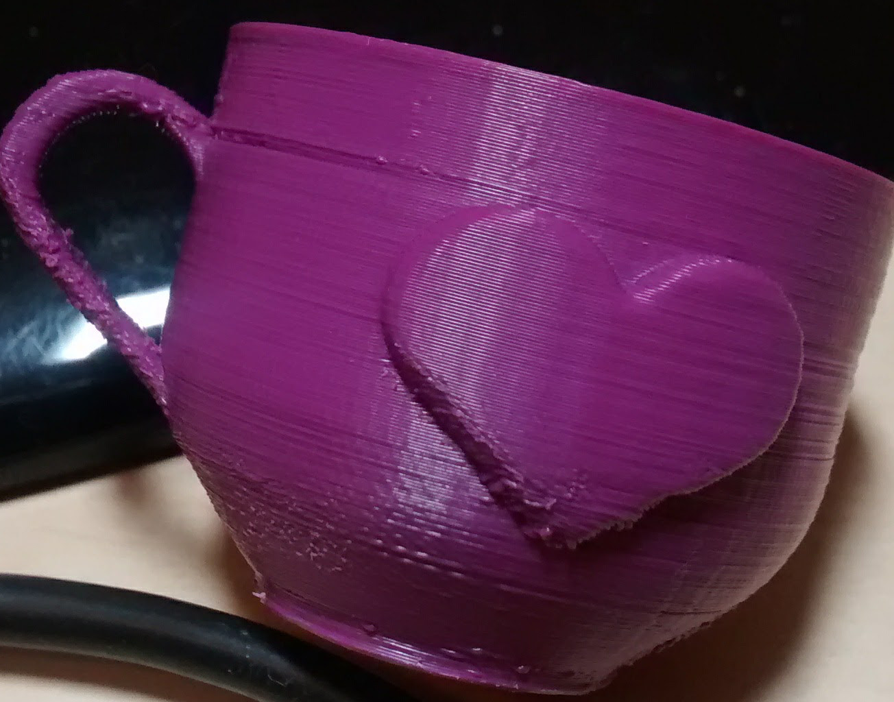 Ono je to celé vůbec nějaké hrbaté. Každopádně ten posunutý kousek je vidět že navazuje na uchycení ucha hrnku. Stává se že slicer udělá v navazujících tvarech jinou výplň, nebo je kousek za stěnou dutina atd. a pak to dělá něco podobného. Zkus jiný slicer a zkontroluj v tom místě dráhy nástroje jak to bude vypadat.