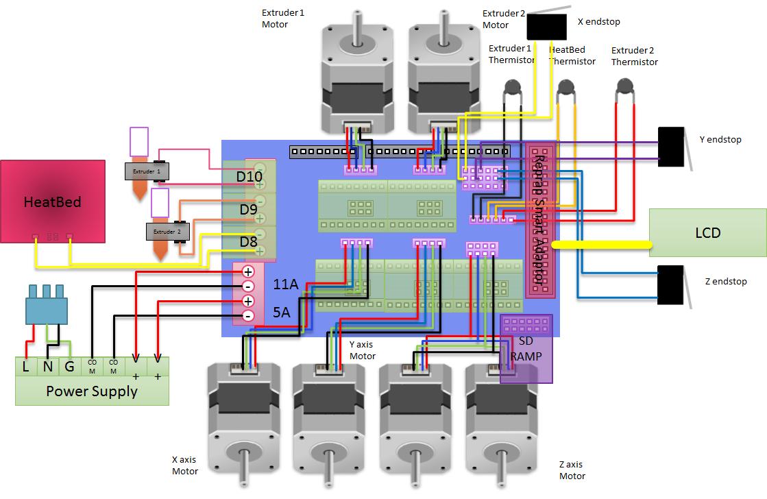 Nemáte někdo odkaz na schéma zapojení pro dvě hlavy, extrudery? (Pokud to vůbec lze)