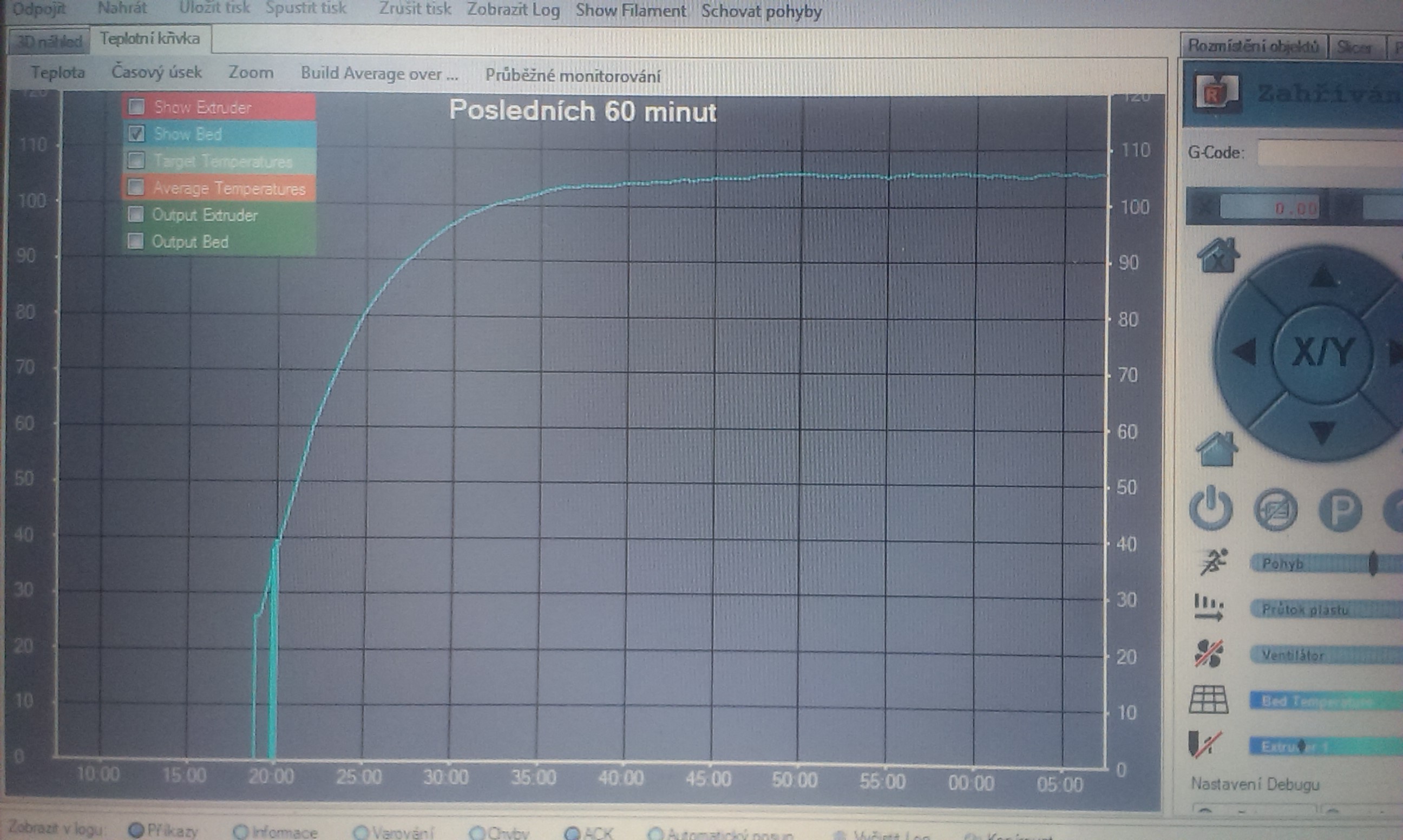 Pro spojení s tiskárnou jsem použil Pronterface, protože Repetier host mi "polyká" část odpovědí z Marlin firmwaru.