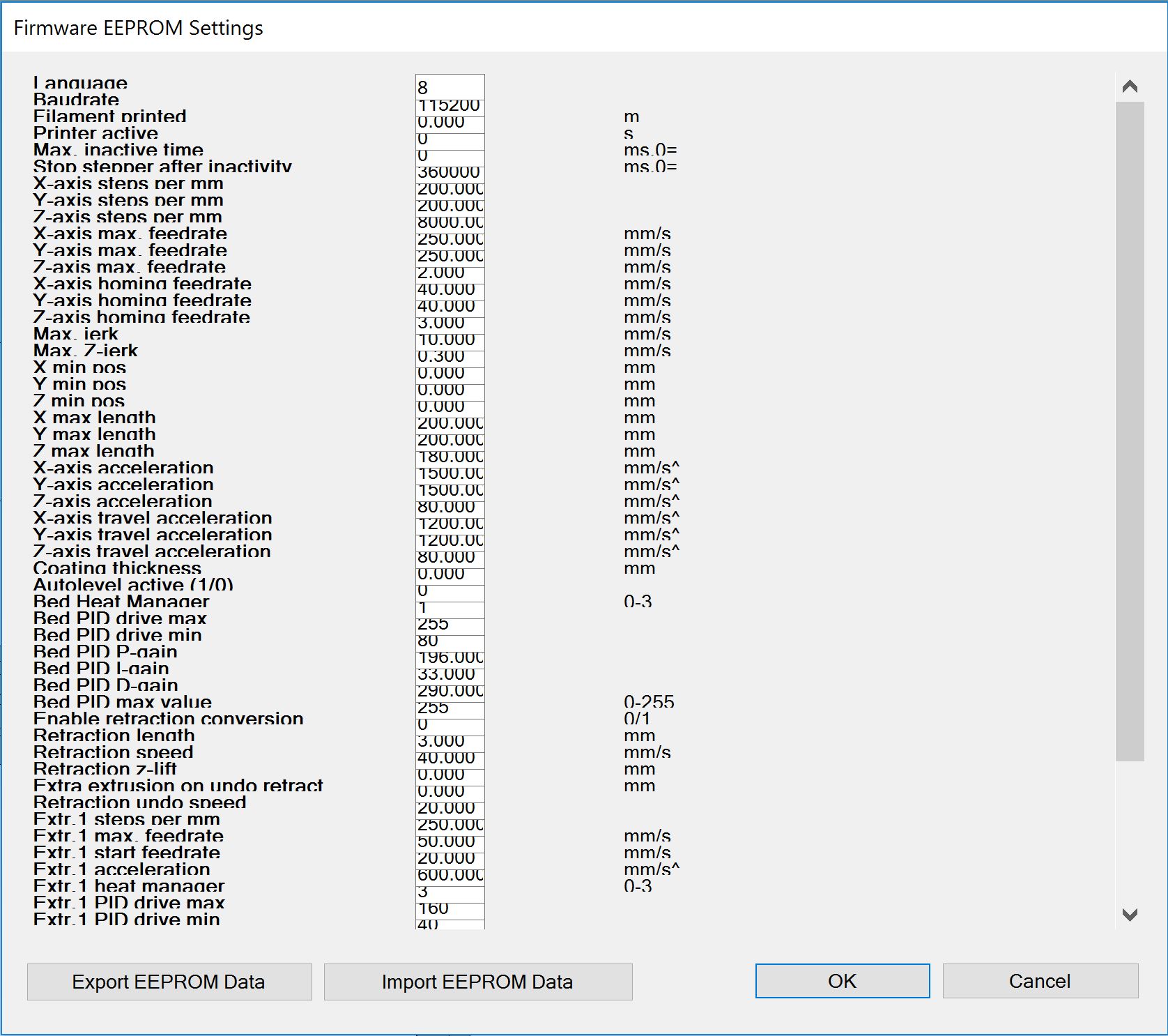 Kroky motorů v eeprom nastavené dobře?