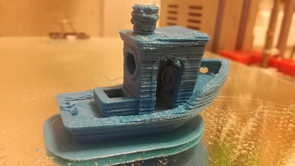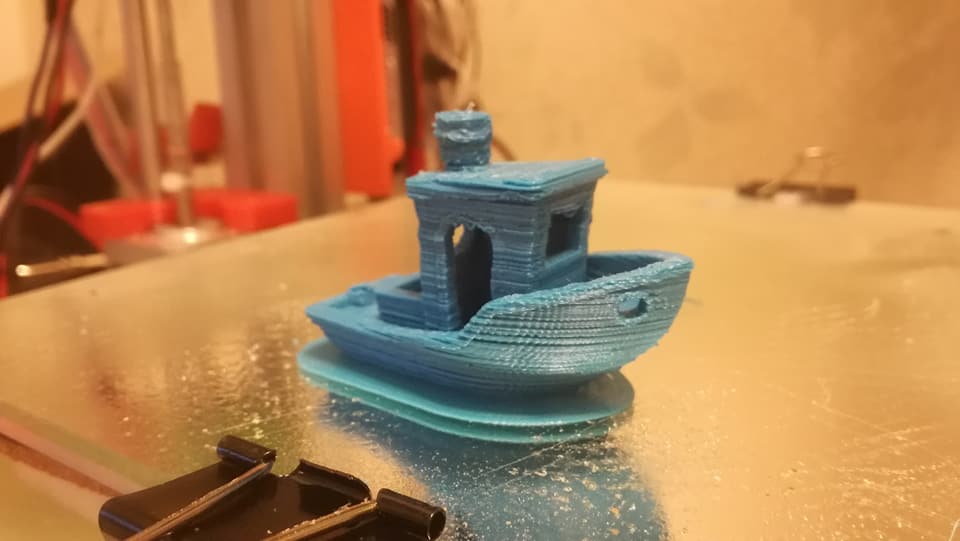 Takhle vypadá lodka, zitra se vrhnu na ty motory napeti protoze dva moc topi a jeste doladit asi tu teplotu nebo rychlost ted fakt nevim proc jsou misty mezery,treba jen blbe vykalibrovany zatim jsem delal jen extruder a podlozku....