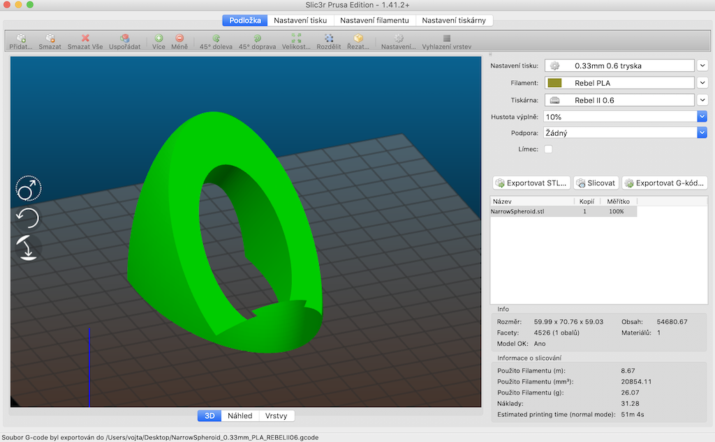 No rekneme to tak, ze moje masina to pocita tak rychle, ze cas vypoctu neresim. Co ale potrebuju, je videt drahy vcetne feature type aspon. Abych mohl ladit tisk a videl chybu zavcasu (vetsinou moji vlastni). Tisknu povetsinou komplikovanejsi veci a resim dost thin wall a semtam i vysky vrstev (sem zvyklej ze simplify tisknout vice layer height v jednom objektu) atd.