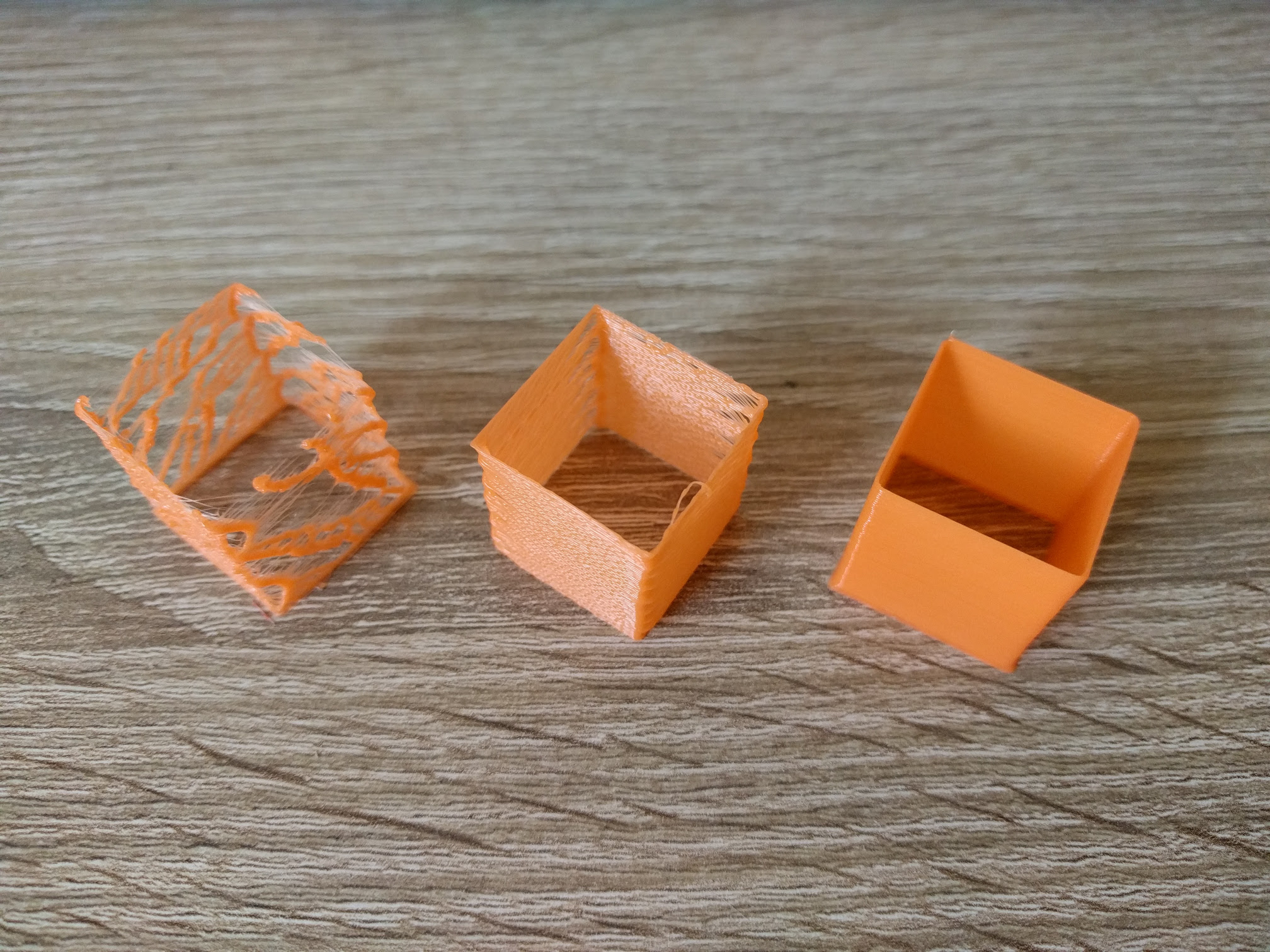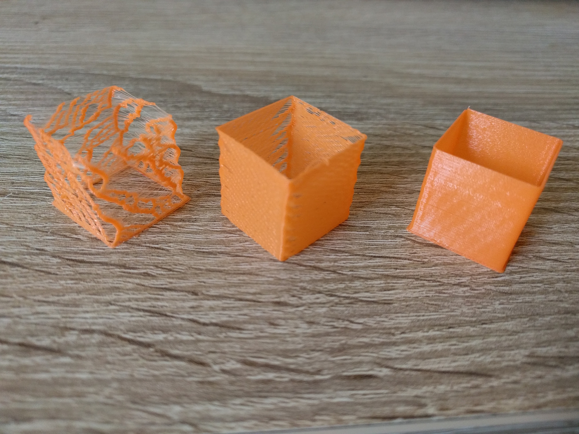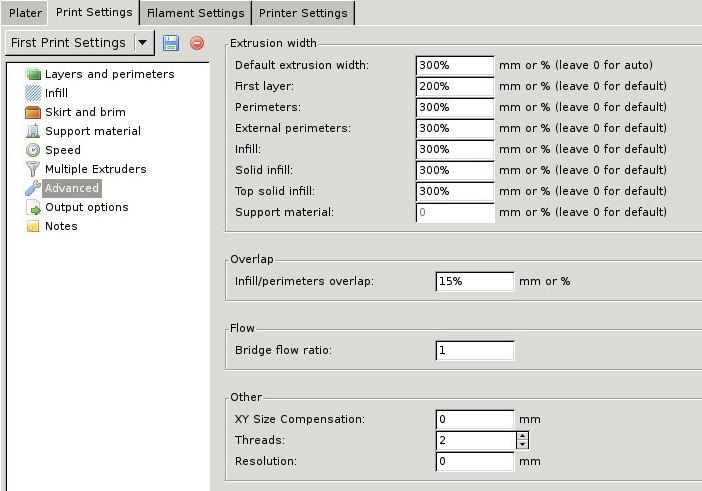 Mám trysku 0.4mm, 3mm ABS filament. Slic3r mám nastavený defaultně. Děje se mi to, že při výplni se mi tvoří cucky. Podívejte na přiložené fotky. Spodní vrstva je super (kromě toho urvaného rohu). Ale při pohledu z boku je vidět, že jsou ve stěně dírky. Při pohledu zhora jsou vidět ty pucky. Tisknul jsem testovací kostku 20x20x20 a stejný výsledek. Co pomohlo, bylo nastavení "Extrusion multiplier" z 1 na 2. Pak to vypadá solidně (taky se vytlačí 2x více filamentu). Co mě ale zaráží je, že v popisku je, že se obvykle mění na 0.9 až 1.1. Další, co pomohlo, bylo nastavit vše v "Extrusion Width" na 300%. První kostka měla nastaveno 0 (auto), druhá 200% a třetí 300%. Zase ale, není 300% moc? Na různých diskuzích jsem četl, že nekdo dává 220%.