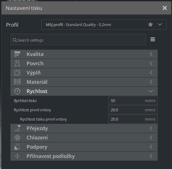 Lebo ja mam nastavenu prvu vrstvu na 25mm/s a ostatne na 50mm/s. Ale ono to tlaci vsetko rovnakou rychlostou 25mm/s.