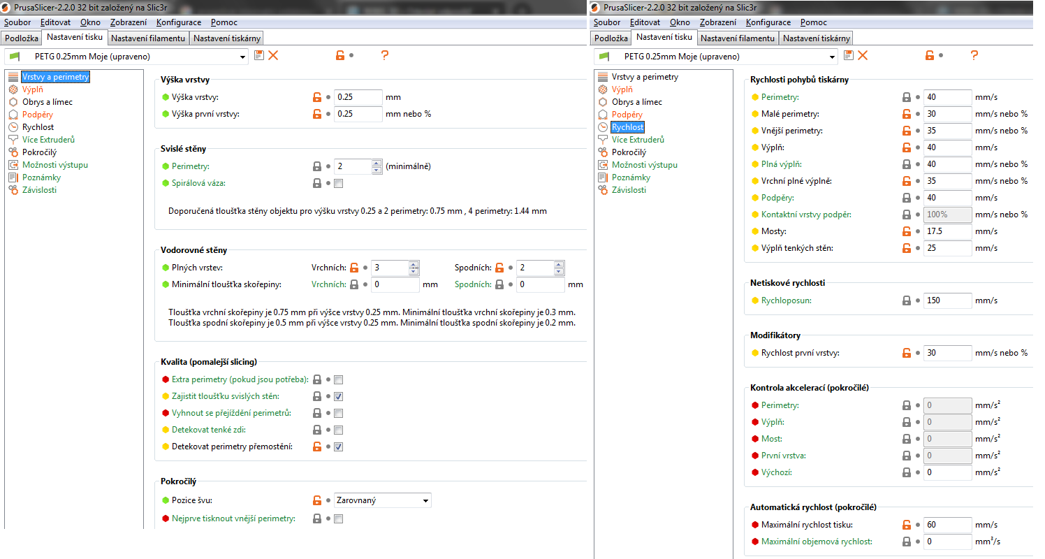 Pak při slicování můžeš nastavovat i rychlosti a všemožný kraviny-musíš přepnout do expert modu