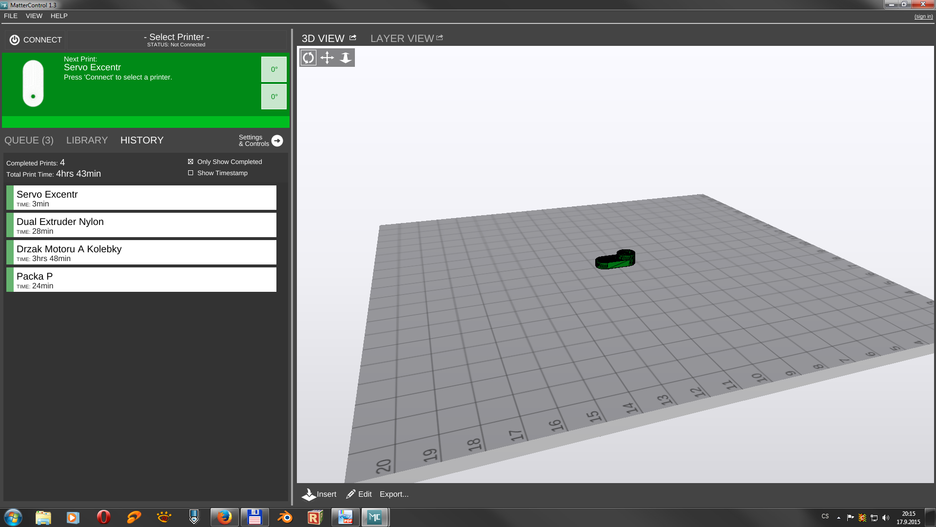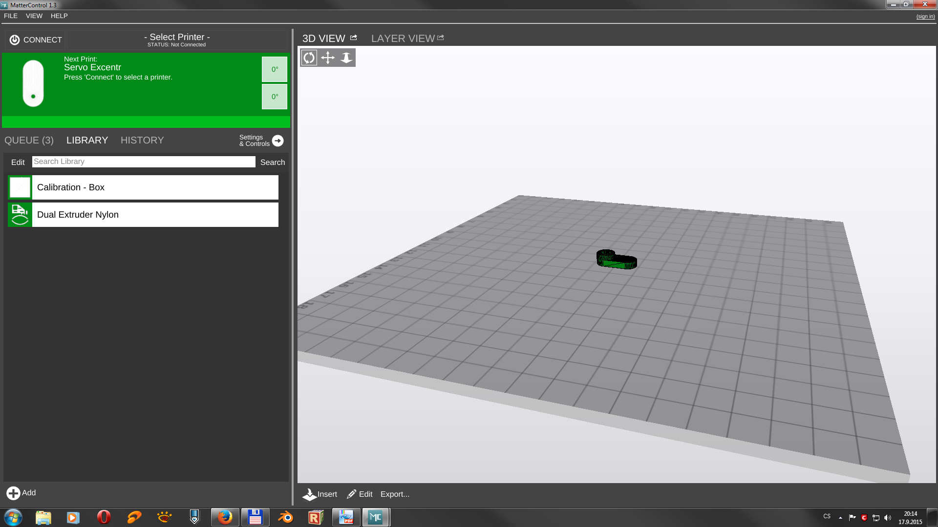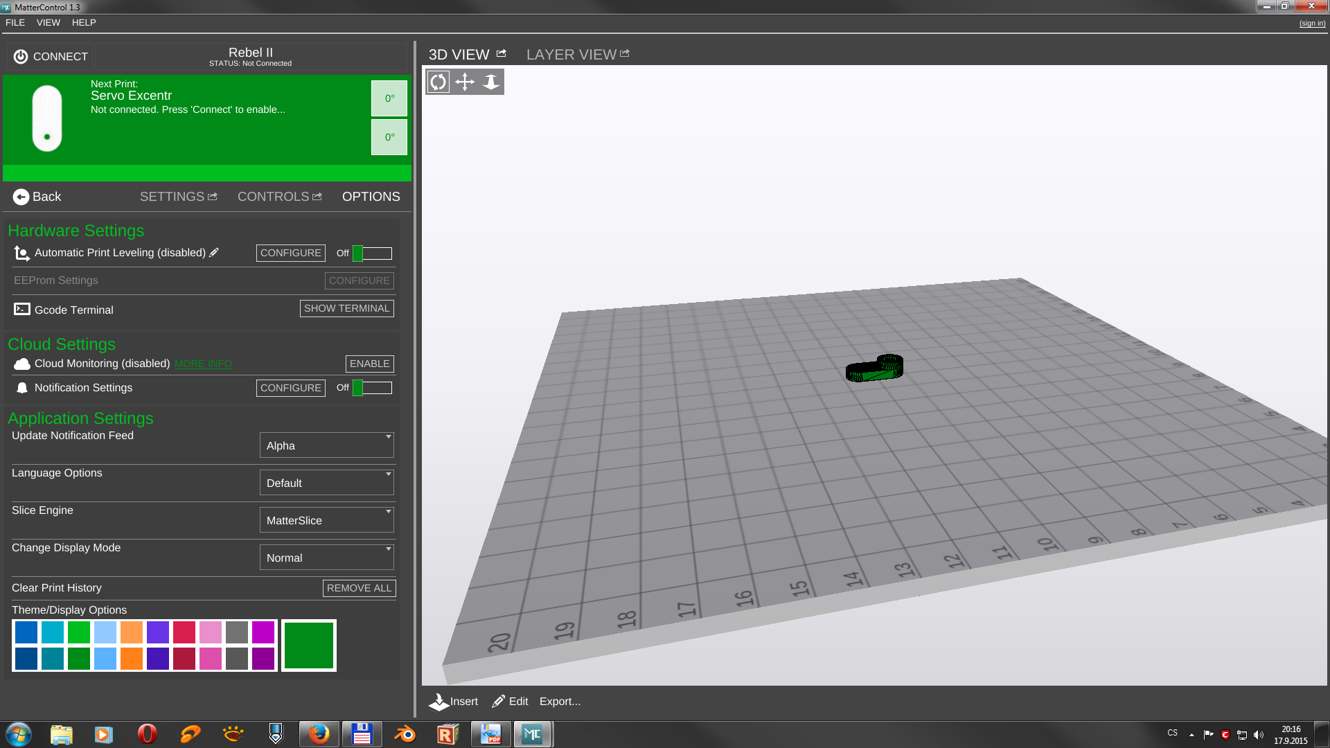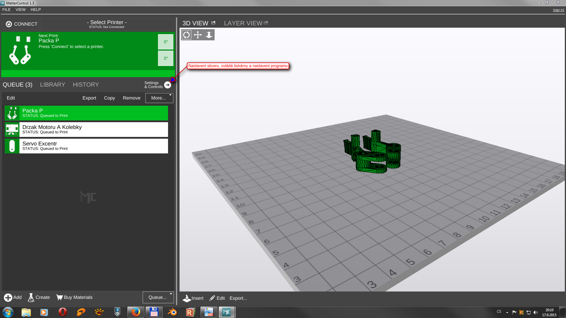 Teďka už k samotnému MatterControleru verze 1.3. Na první pohled je prostředí docela pěkné a přehledně udělané jakmile se do něho dostanete.