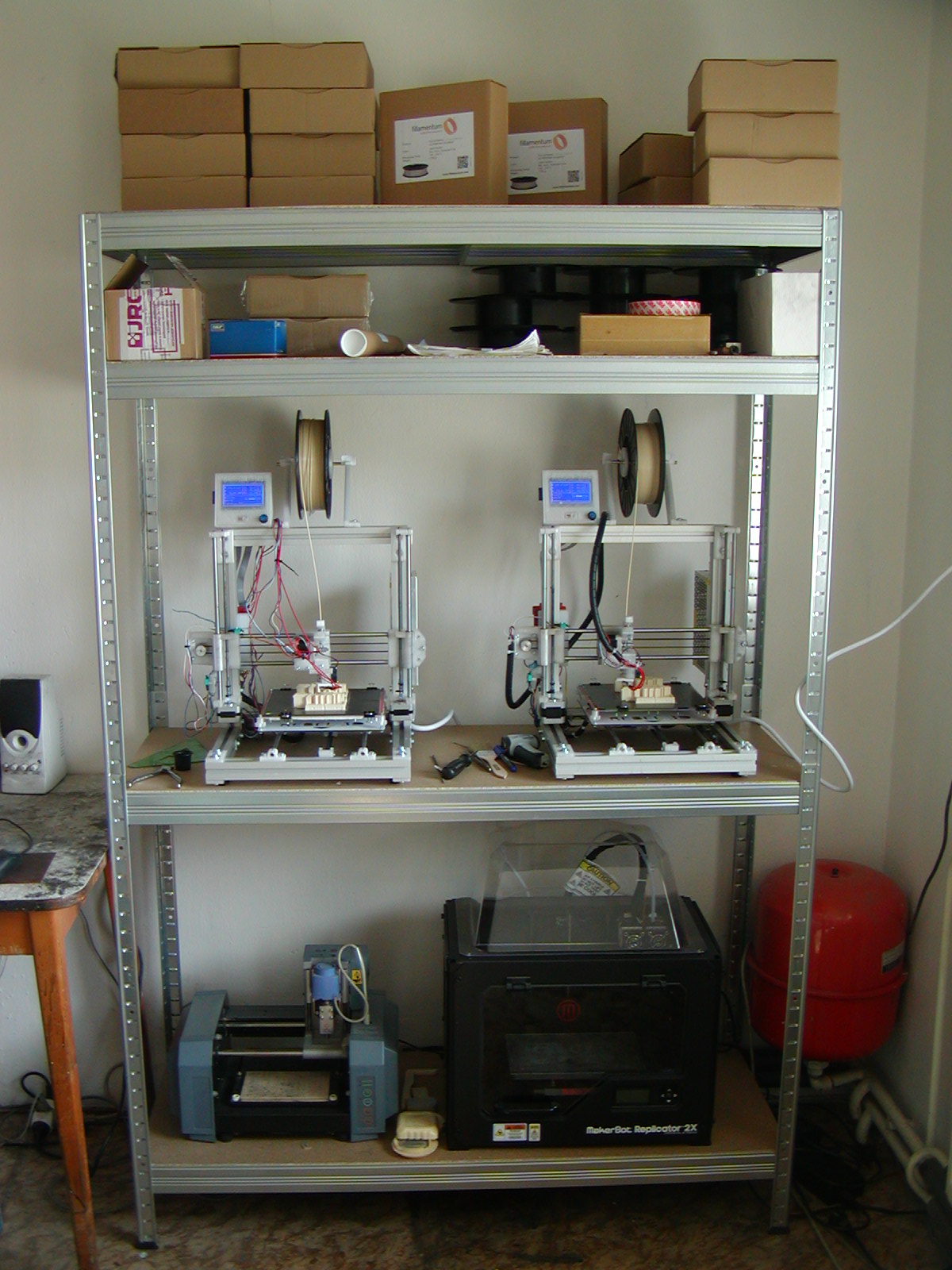 1x Rebel II JRC HD (Marlin) - pracovní, 3x 3DS Cube 3 - pracovní, 1x 3DS CubePro Duo - pracovní
