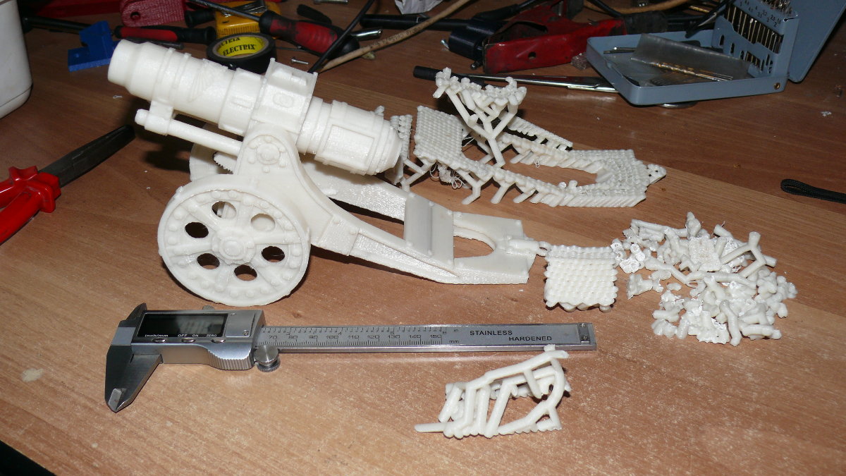 Ahoj, tak tady je 230 mm model děla z ABSka, mám to jako nový materiál 1,75 mm, 24 hodin tisku.