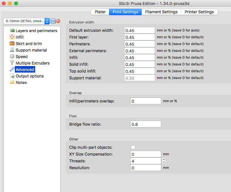 Já většinou pokud možno nastavuju extruzi v mm nikoliv auto nebo %