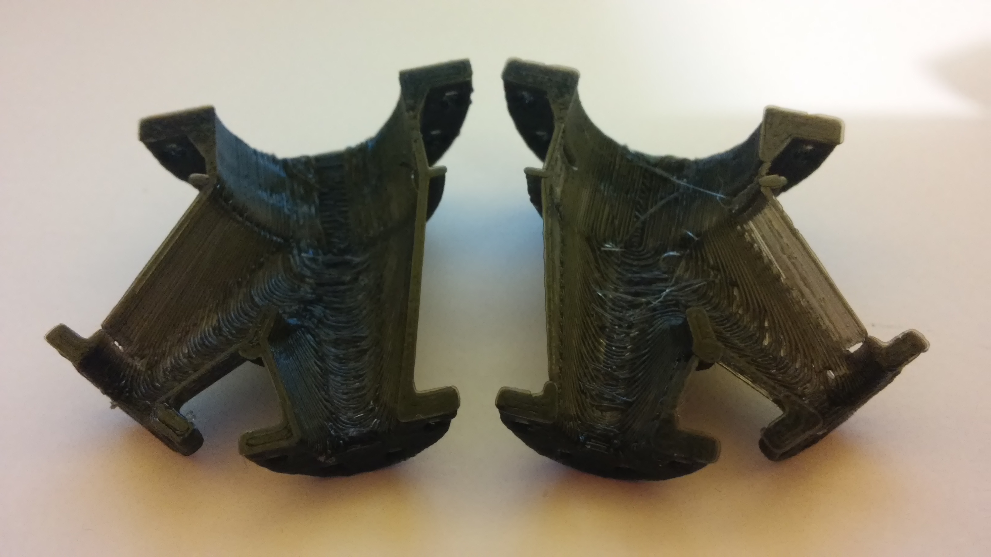 Zkoušel jsem slicnout druhou půlku přes curaengine a vytisknout, stejná výška vrstvy, rychlost 25mm/s. Výsledek je skoro stejný, jenom cura hodil na ty přepážky nějaký drobný bordel, ale zase vytiskl stěnu o síle 2 perimetry.