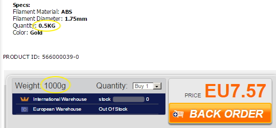 Ale vychází, jen musíš mít registraci a Platinum přístup za 4 předešlý nákupy (u mě dohromady asi 12 tausen) a zůčtovat přes USD. Pak máš kilovou špuli za 15,36 USD a dopravu 9,73 USD...
