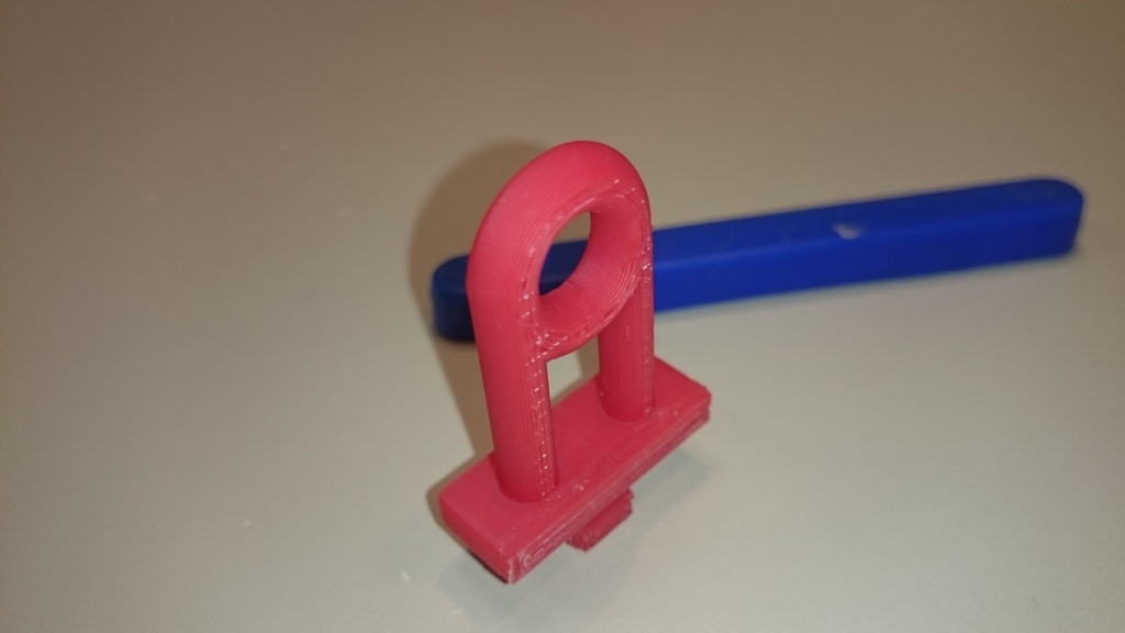 Ovšem tisk válce průměr 5 mm na ležato a ještě na podporách, to je přímo běs. Vždy to skončí že spodní polovina válce je v řezu hnus skoro trojůhelník, horní je celkem OK. Dávám to sem jen jako zajímavost, jestli někoho napadne, jak to vytisknout. Nejspíš tu spodní část pro obě ouška přemaluju na obdélník stojící na skle, na tvaru vlastně nesejde. Ale ten háček nemá řešení. Otáčet vše o 90 st by asi nemělo kvůli vrstvám požadovanou pevnost.