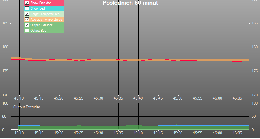 Protože si myslím, že by bylo fajn vidět, jak fungují jednotlivé druhy regulace hotendu, dovolil jsem si udělat jejich přehled vč. grafů z Repetier-host.