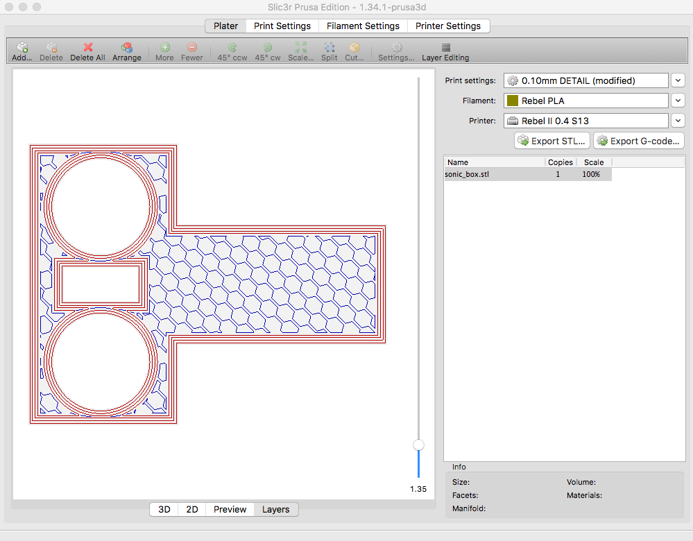 Novejsi zatim neni,ne (1.3.0 teprve vydaji)? To by me zajimalo v cem je zakopany pes. Ten objem vyplne se my meni, pokud menim vysku vrstvy (vyska prvni vrstvy je ve vsech pripadech 0.25 a vysku vrstvy jsem postupne dal 0.1, 0.2 a 0.3 - vypln vzdy honeycomb 30%).