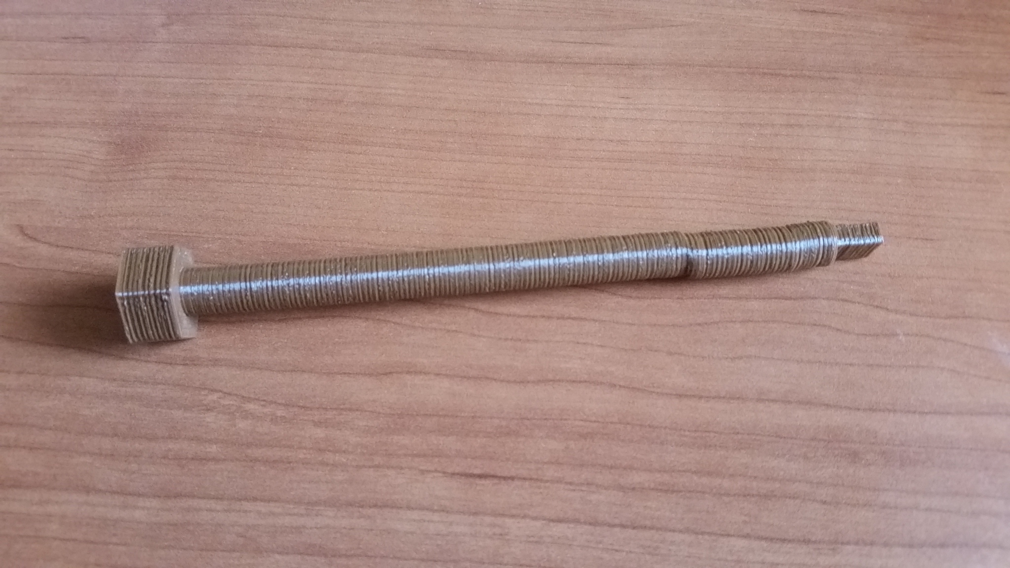 Ohnutá závitovka uchycená nahoře i dole bude nejspíš zodpovědná za ty 2mm vlnky (stoupání tyče) po celé výšce.