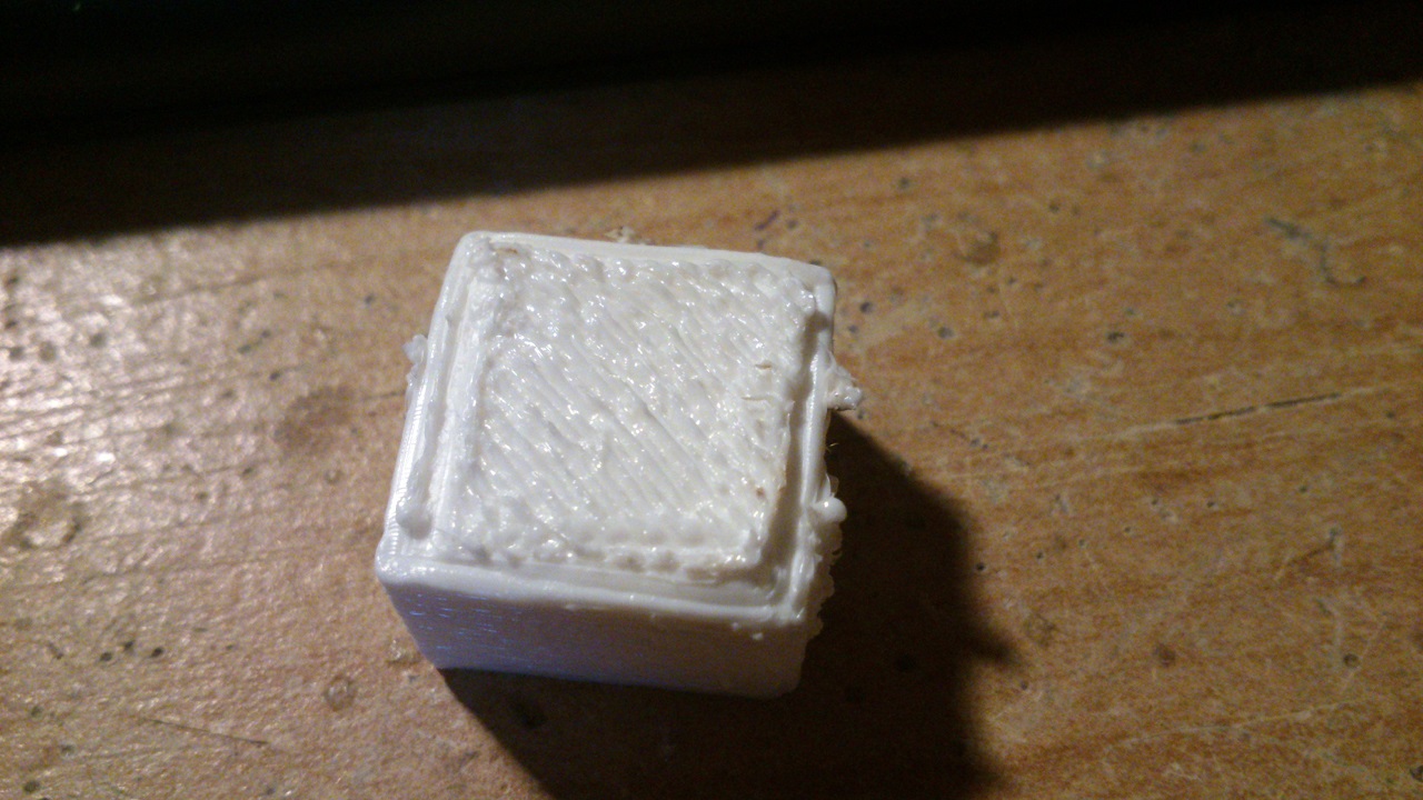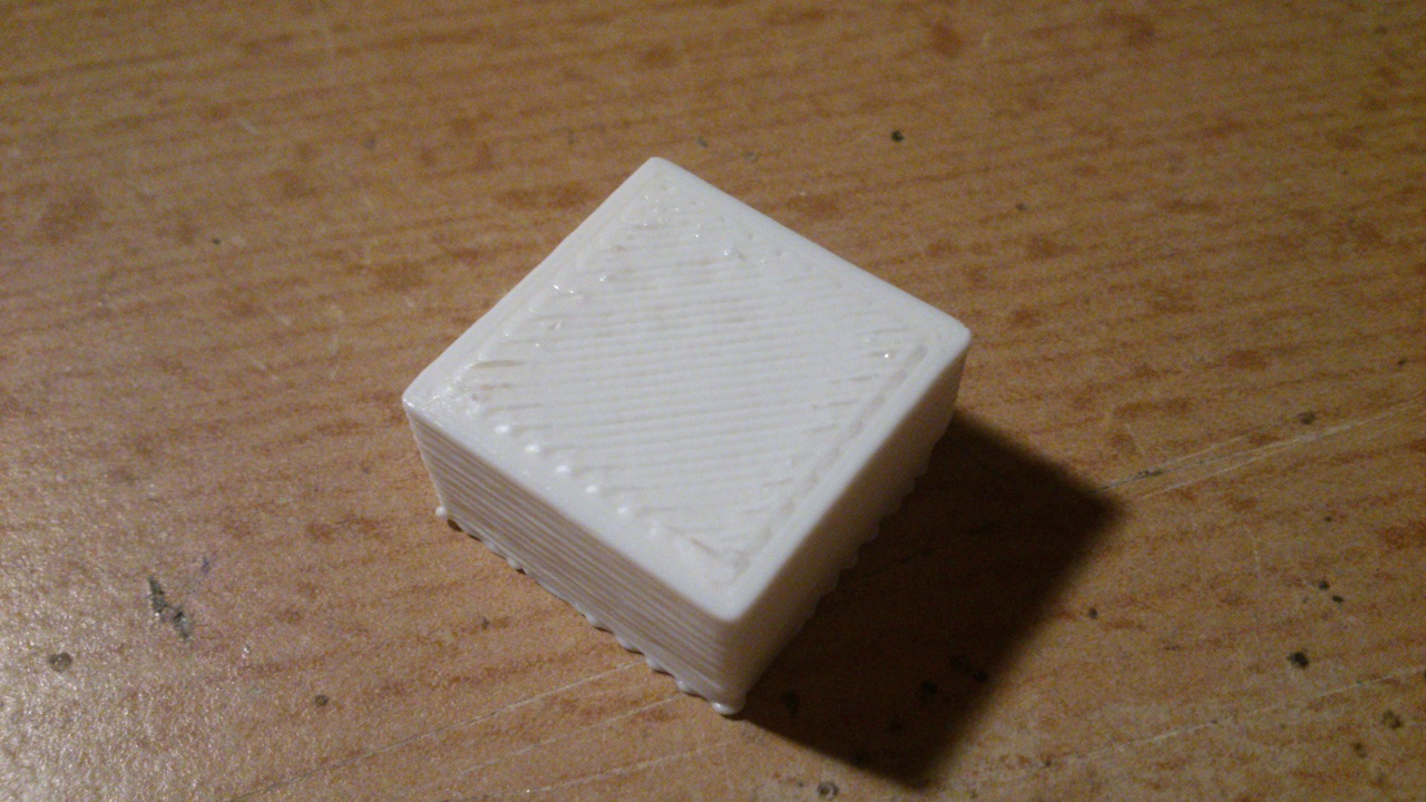 Počet kroků je stejný jako ve FW z fóra, to by mělo skoro sedět ne? Asi mám moc vysoko trysku (jde to vidět i na pohled), ale hlavně to dává moc materiálu, protože to dává filament pro větš objekt (jak má být), jak psal Dan.