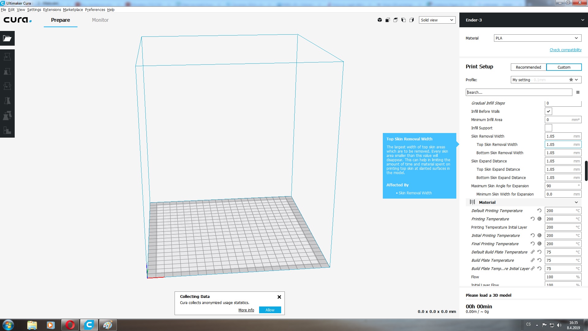 - nechápu proč tu kostku tiskneš se 100% výplní, nastavil bych 2 perimetry, 5-6 plných vrstev nahoře a dole, a výplň 30-40%.