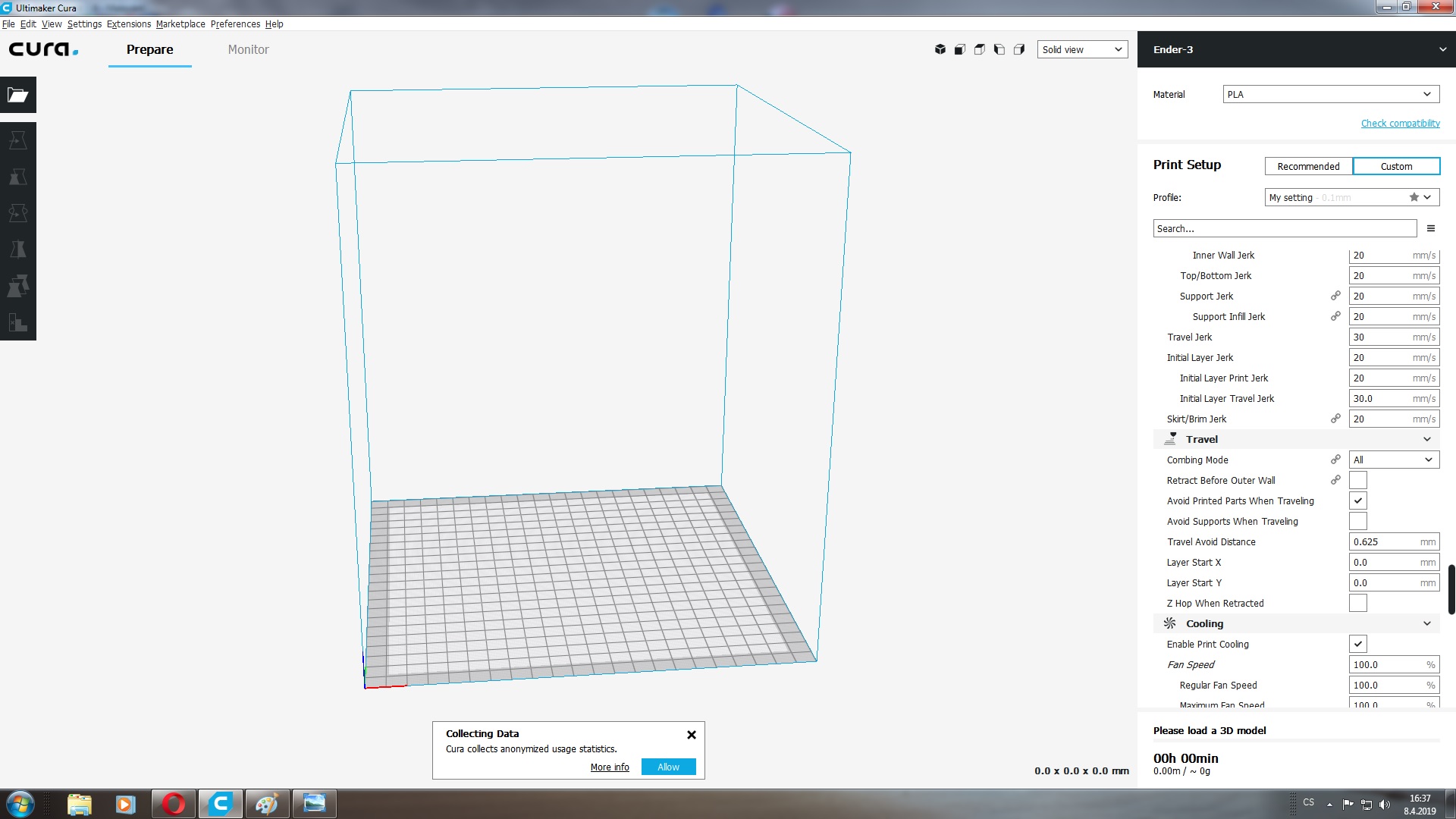 Výše máte screenshoty ohledně nastavení tiskárny a ventilátorů, které používám na chlazení. Ventilátory používám celkem dva na extrudér, viz obrázky.