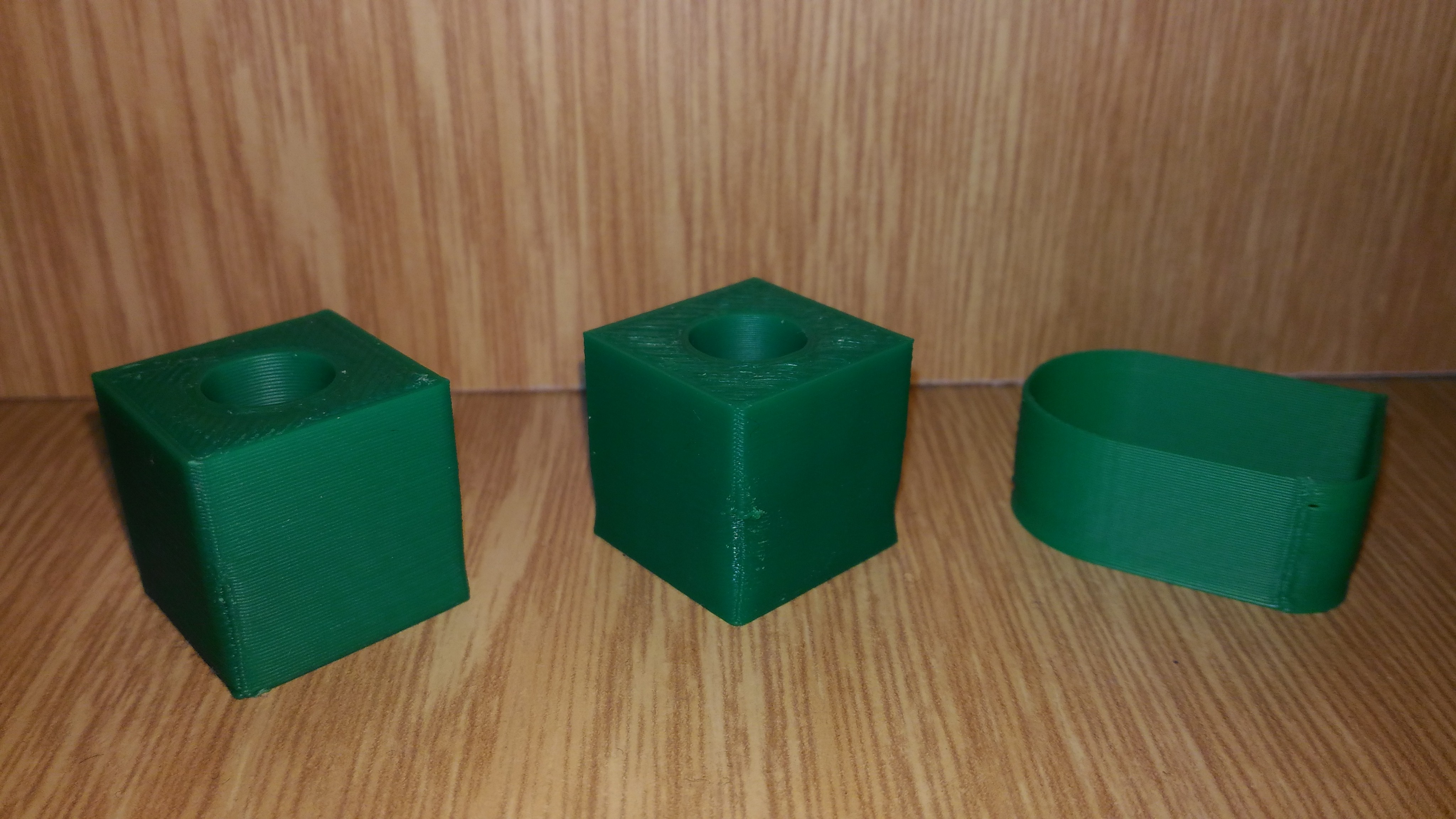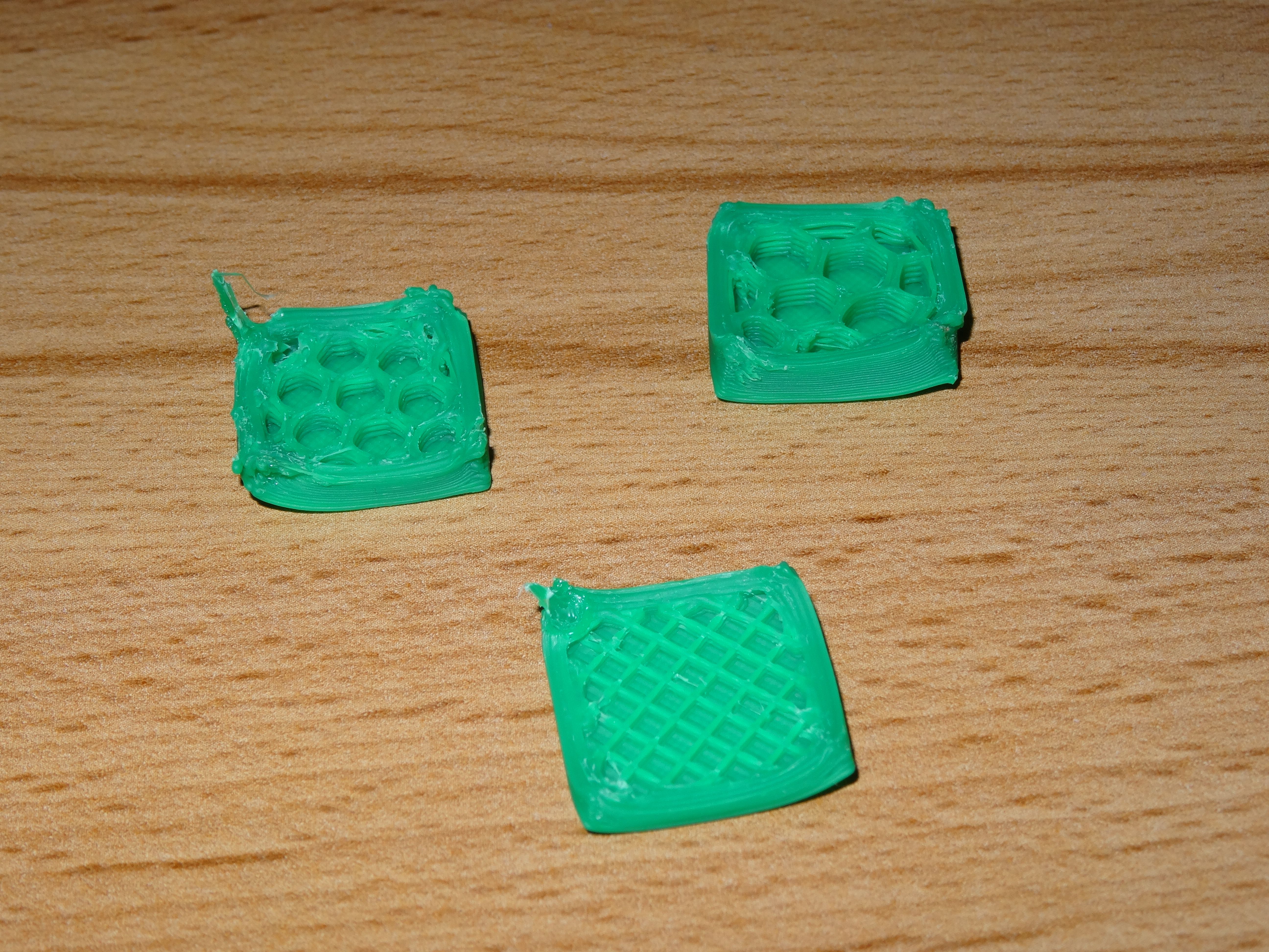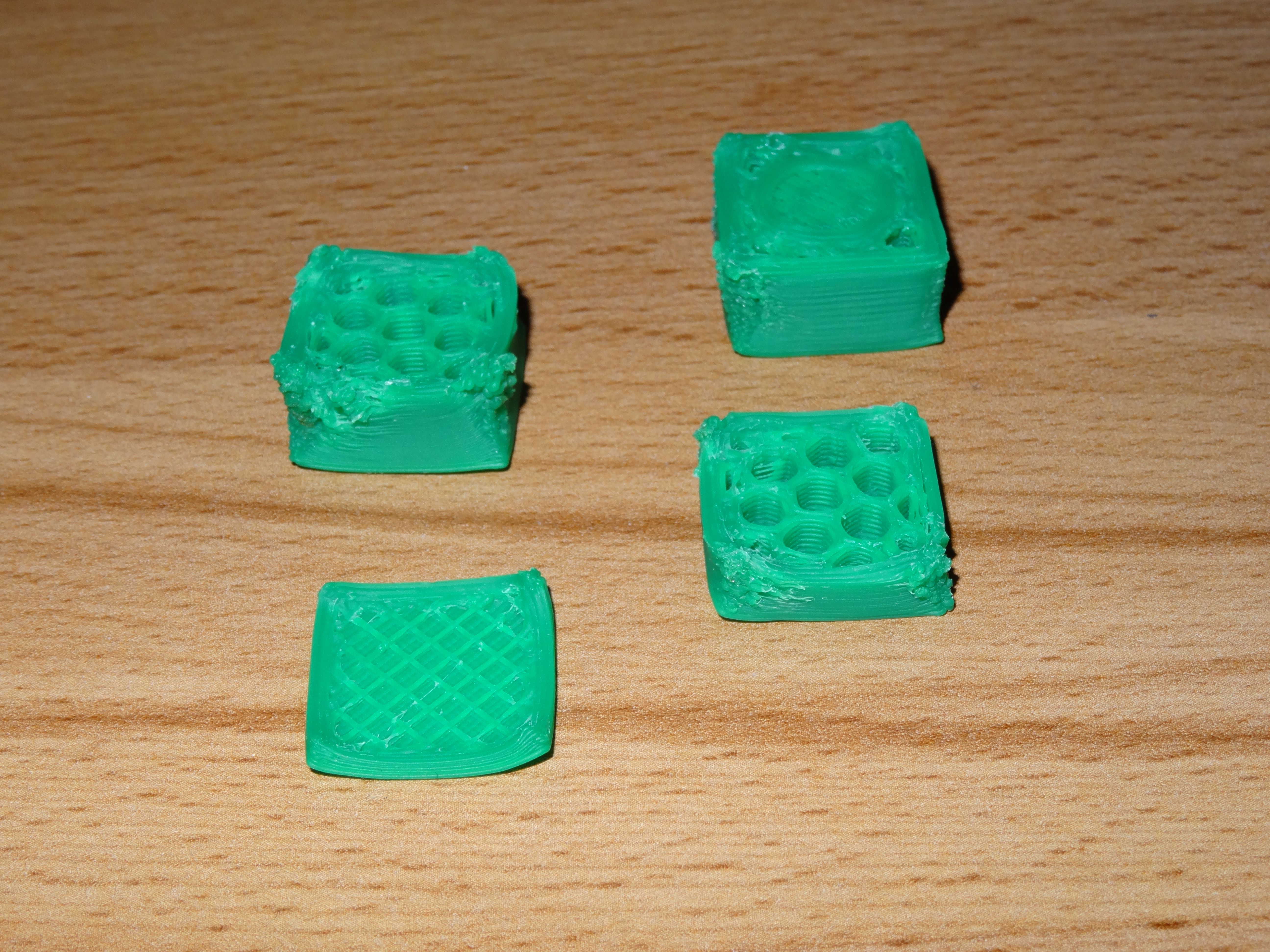 To co je pro všechny rozběhy stejné ( bez ohledu jak to stavitel pečlivě sestavil ) je kalibrace a zjištění jak se vlastně tiskárna chová . Je třeba tedy prvně začít s kalibrací extruderu ( zadáte podej 50 mm filamentu ,tak ho musí 50 mm podat )a přitom se díváte jestli se zubatice pravidelně zakusuje do materiálu a podává dobře nebo proklouzává( je třeba zvětšit přítlak ) . Teprve po tomto si přišroubujete na správné místo hotend a zasunete do něj filament. nahřejete ručně hotend pro ABS na 240°C ,po nahřátí buď změříte teploměrem skutečnou teplotu na trysce nebo rukou vymáčknete přítlak filamentu a zkusíte zatlačit filament do hotendu zda půjde lehce tlačit .Zadáte podej třeba 20 mm a díváte se jak se tvaruje roztavené vlákno pod tryskou ( padá rovně dolů , točí se vzhůru ,namotává se jako kulubíčko , objevují se bublinky ve vláknu ) a zda zubatice stíhá podávat . Teprve až nyní můžete přistoupit k nějakému se snažení položit něco na stolek ( teplotu pro daný materiál jste zjistil testem viz. výše a extruder by měl podávat 100% materiálu protože jste ho zkalibroval ). na tiskárně si seštělujete Home hlavně v Z ose ,tak aby ve všech 4 rozích byla tryska stejně vysoko nad stolkem ( řádově 0,15 až 0,25 pro výšky vrstev 0,2 mm s tryskou 0,4 mm) .