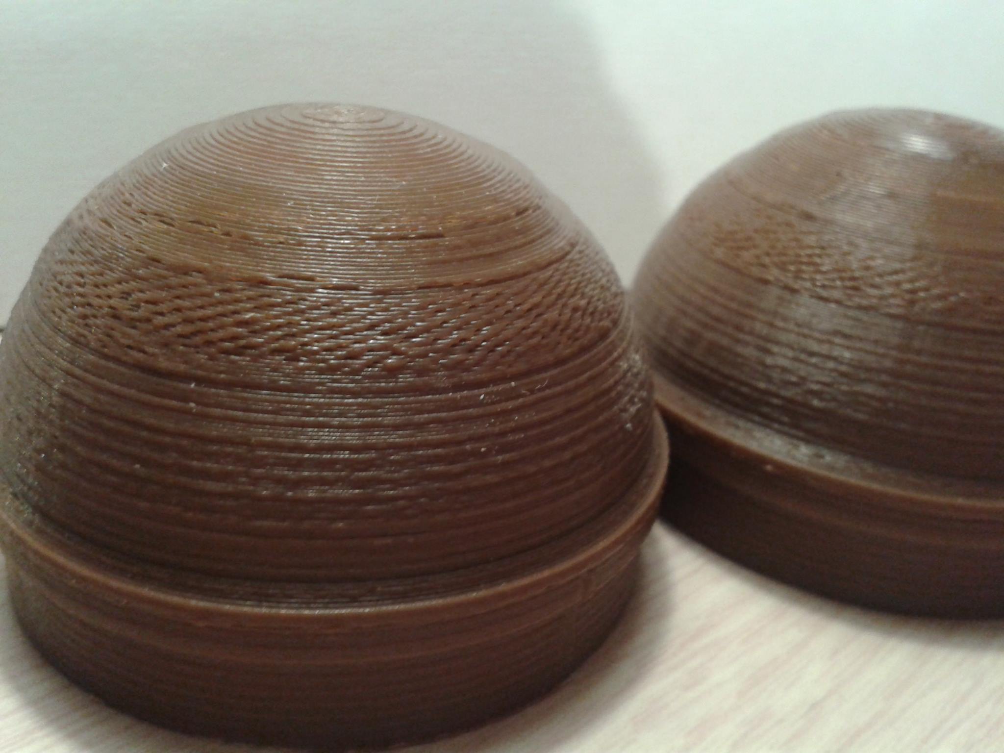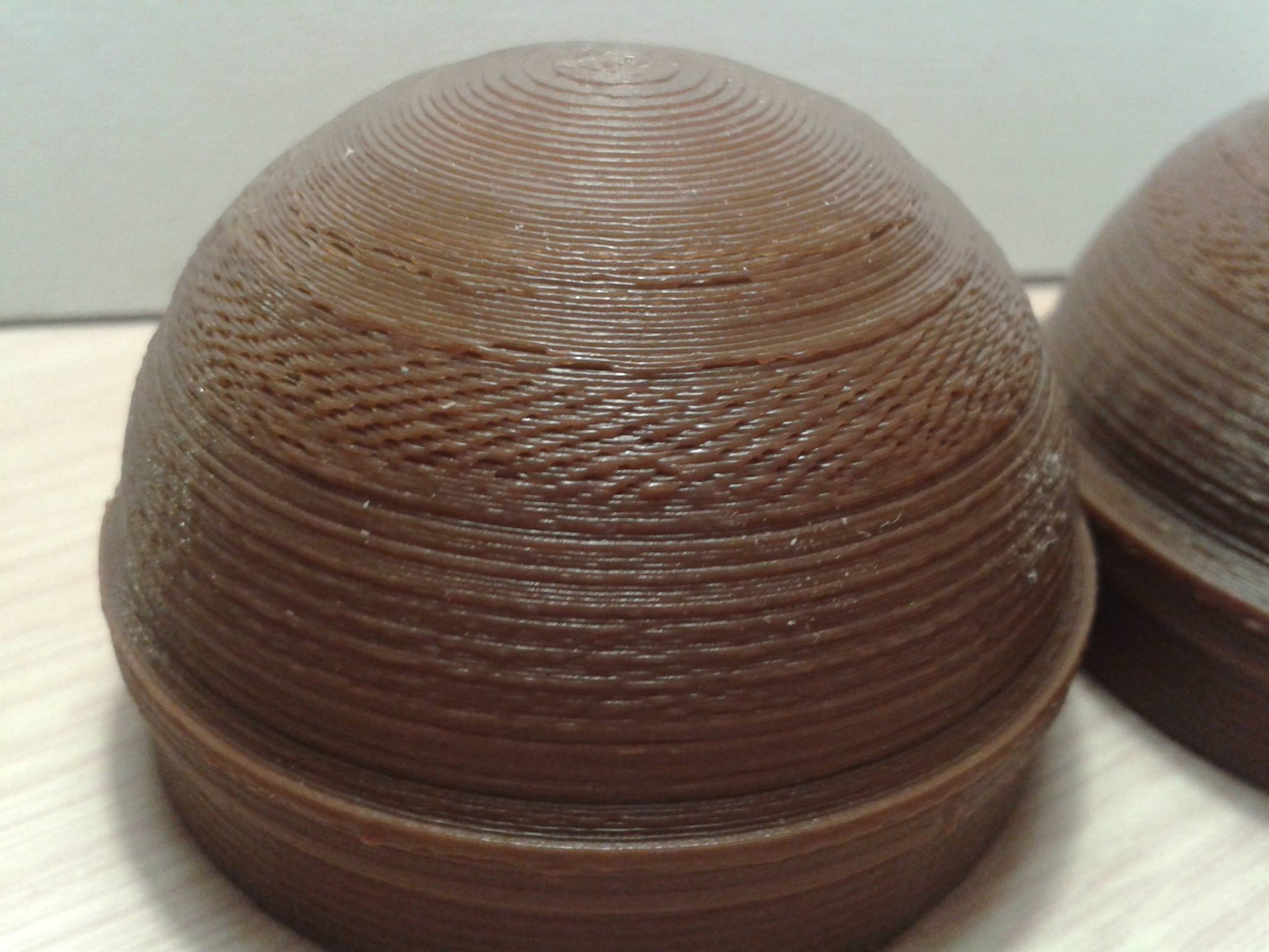 Zdravím, během tisku se často místy vyskytují hrbolky na perimetrech a to predevším na oblých či kulatých částech. Viz přiložené fotky. Zvláštní je, že většina výtisku je v pořádku, problém se objeví jen místy. Při poslechu tiskárny jsem zjistil, že v daném místě tisku se ozývají zvuky, které mi přijdou jako kdyby tryska drhnula o výtisk. Při opakovném tiska nastal problém prakticky ve stejném místě. Napadá mě tedy že se jedná o nepřesnost v pohybu osy Z. Nenapadá někoho jiná příčina či ještě lépe řešení?