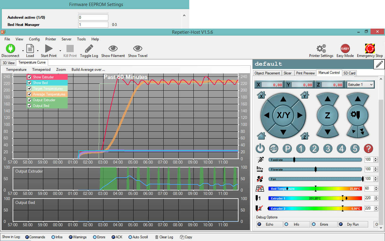 udělal jsem si variaci na Rebel 3 a u jednoho hotendu mi kolísá teplota v rozmezí 20°C, což mi samozřejmě vadí. Kalibroval jsem PID regulátor pomocí příkazu "M303 S190" a nic to nedalo. Ba i je zvláštní, že při kalibraci bylo rozmezí teploty v pořádku (bylo minimální, tak jak to mám na druhém extruderu). Tím pádem předpokládám, že v elektronice není problém a nachází se někde v softwaru...