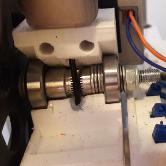 Ahoj, složil jsem extruder na RebeliX X2 a když do něj dám hotend, tak je celkem velká (několik mm) vůle mezi hotendem a příložkou která ho má držet. Má to tak být? Takto ho drží akorát těsná díra v které je. Lepší asi bude vyrobit nějakou kovovou podložku aby nezajel hotend tak hluboko. Další věc je že při pohybu ozubeného kola na osičce/šroubu, se neotáčí ložiska ale pouze osička v nic. To je mi taky podezřelé
