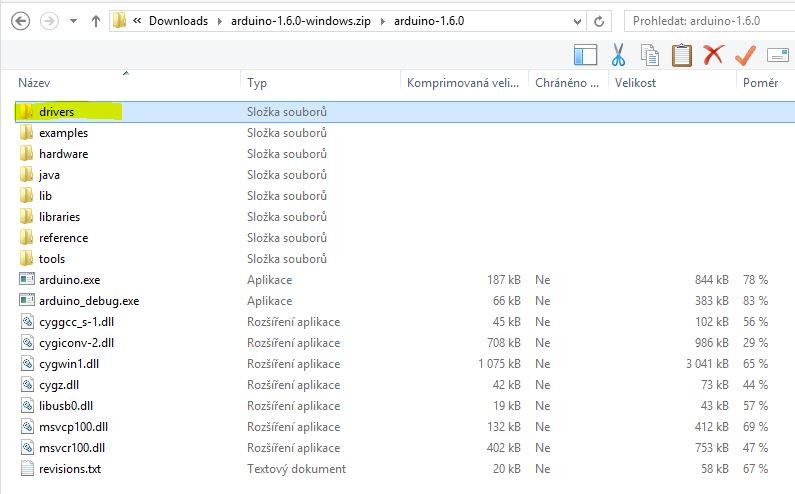 Stahneme si se stranek Arduina ZIP archiv pro Windows