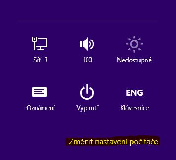 Dame pravy horni roh a zobrazi se nam postarni lista. Zvolime nastaveni. Potom zmenit nastaveni pocitace.