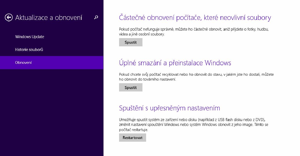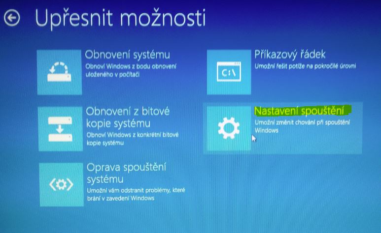 Zvolime obnoveni a u polozky Spusteni s upresnenym nastavenim zvolime restartovat.