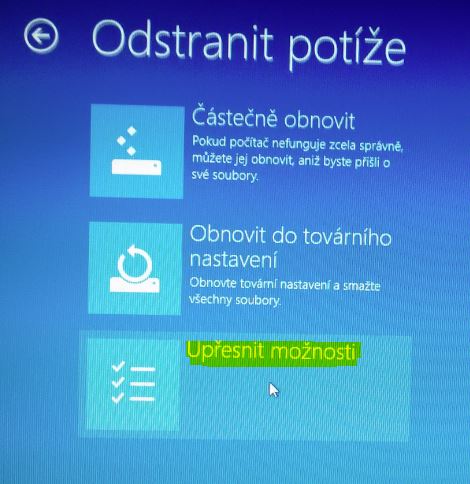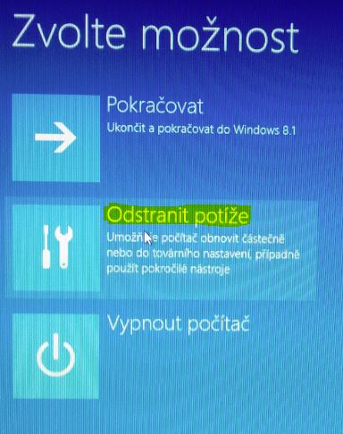 Timto se dostaneme to rezimu nastaveni spousteni a obnovy a zvolime odstranit potize
