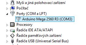 Ve spravci zarizeni pak pod polozkou porty (COM A LPT) uvidime Arduino Mega 2560 R2 (COM3) a ten Com 3 v nasem pripade nastavime do softwaru ktery nam bude tiskarnu ovladat.