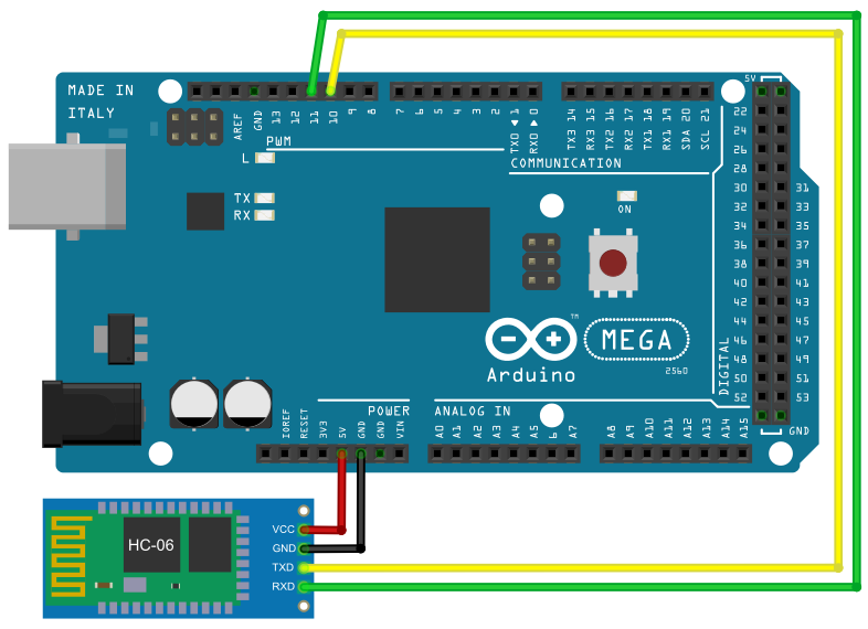 2) Je třeba nakonfigurovat Bluetooth modul. Protože jsem neměl jak připojit Bluetooth modul k PC, použil jsem pro konfiguraci arduino (je jedno jestli to bude UNO nebo MEGA):