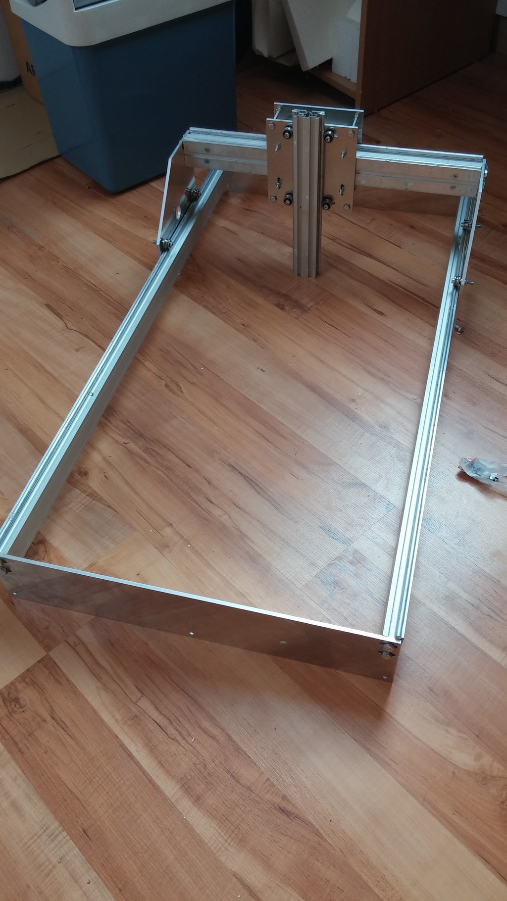 Ano, myslím posuvné meřítko. Už ho mám objednané, ale těžko říct, kdy dorazí. Zatím je to složené jen na hrubo a chybí tam vingly, pracovní deska, ale jezdí to víceméně bez problémů. (ty zvuky jsou škrabání podlahy ) Jen to asi zkrátím cca o 30cm (momentálně je pracovní plocha 800x350x140