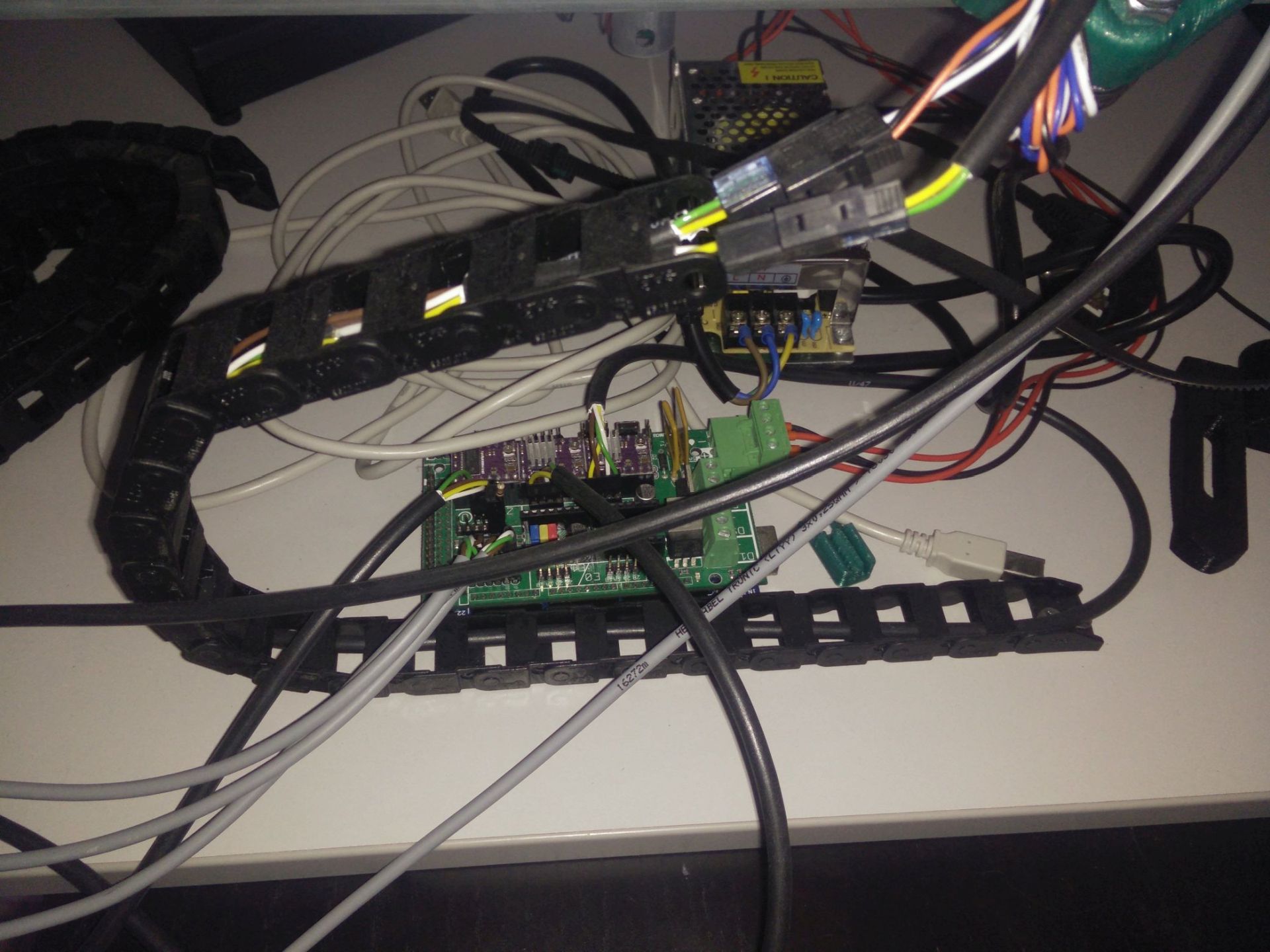 Deska 70x70cm lamino ohraněno abs lištou. Trubky 25mm z oceli následně pozinkované. Motory Microcon SX17-1005QCEF. Kabely teflonové ohybem nezničitelné OLFLEX ROBOT vedené v energořetězech. Zdroj 12V - 5A. Ramps1.4 s 32 krokovými drivery DRV8825. Ložiska 608 2Z vyrobené v České republice. Univerzální držák. Připravena krabice pro arduino, ramps a display (ten jsem zatím nekoupil). Více na fotkách. Přidám ještě nějaké konektory co mi tu zůstali navíc. plocha pro frezovaní(tisk,laser) cca 50x50cm. Nainstalovaný firmware Repetier.