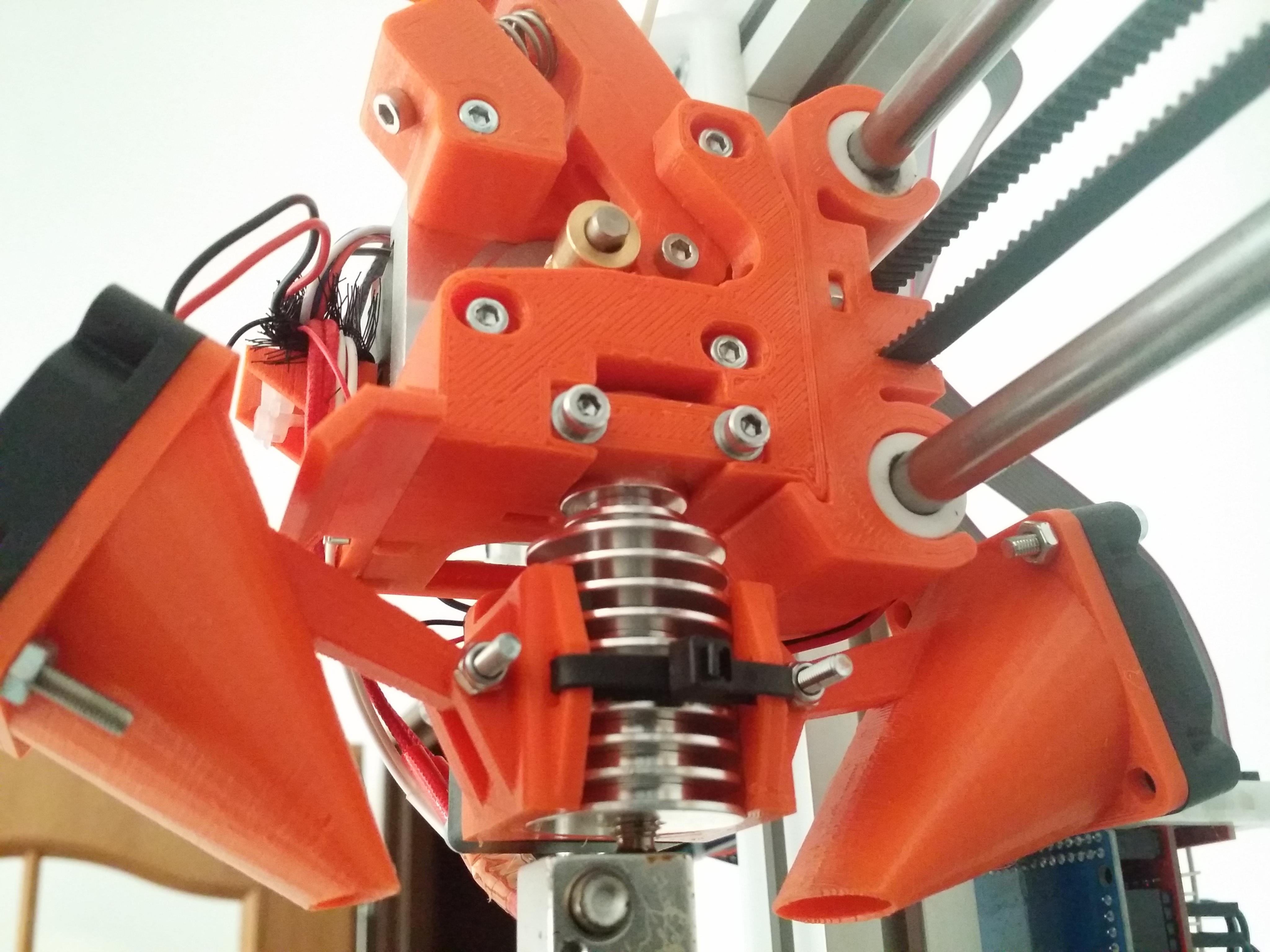 HotEnd je adaptovaná verze E3D s teflonovou trubičkou, snadný tisk PLA, ABS, FLEX, PLASTER, PET.