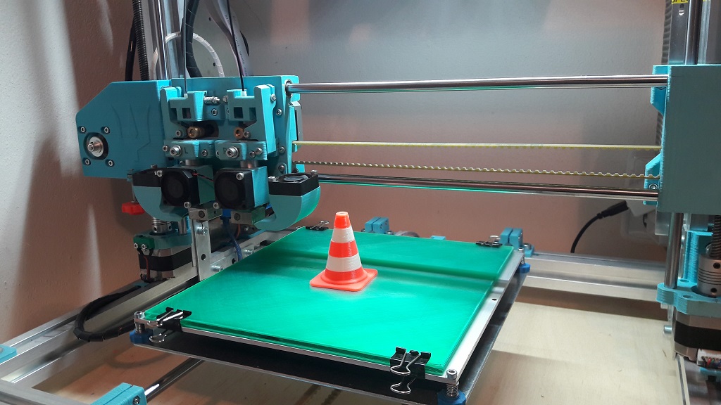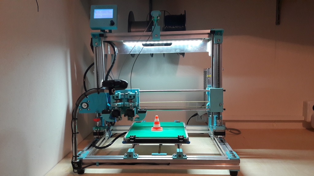 Kalené pojezdové tyče, hliníková vyhřívaná deska MK3, hliníkové domky ložisek na ose Y. Možnost dvoubarevného tisku.
