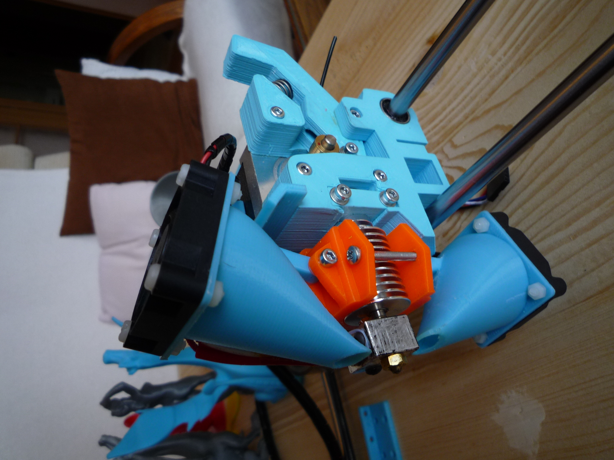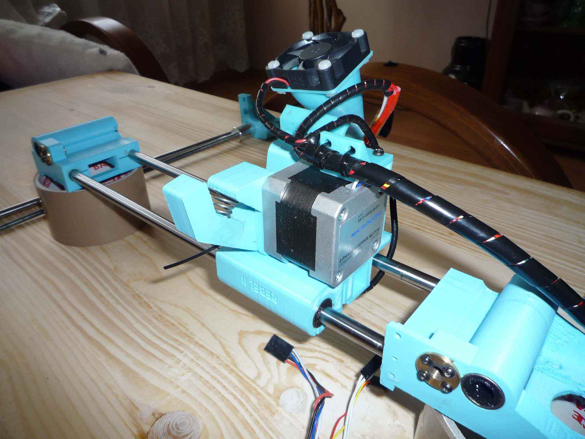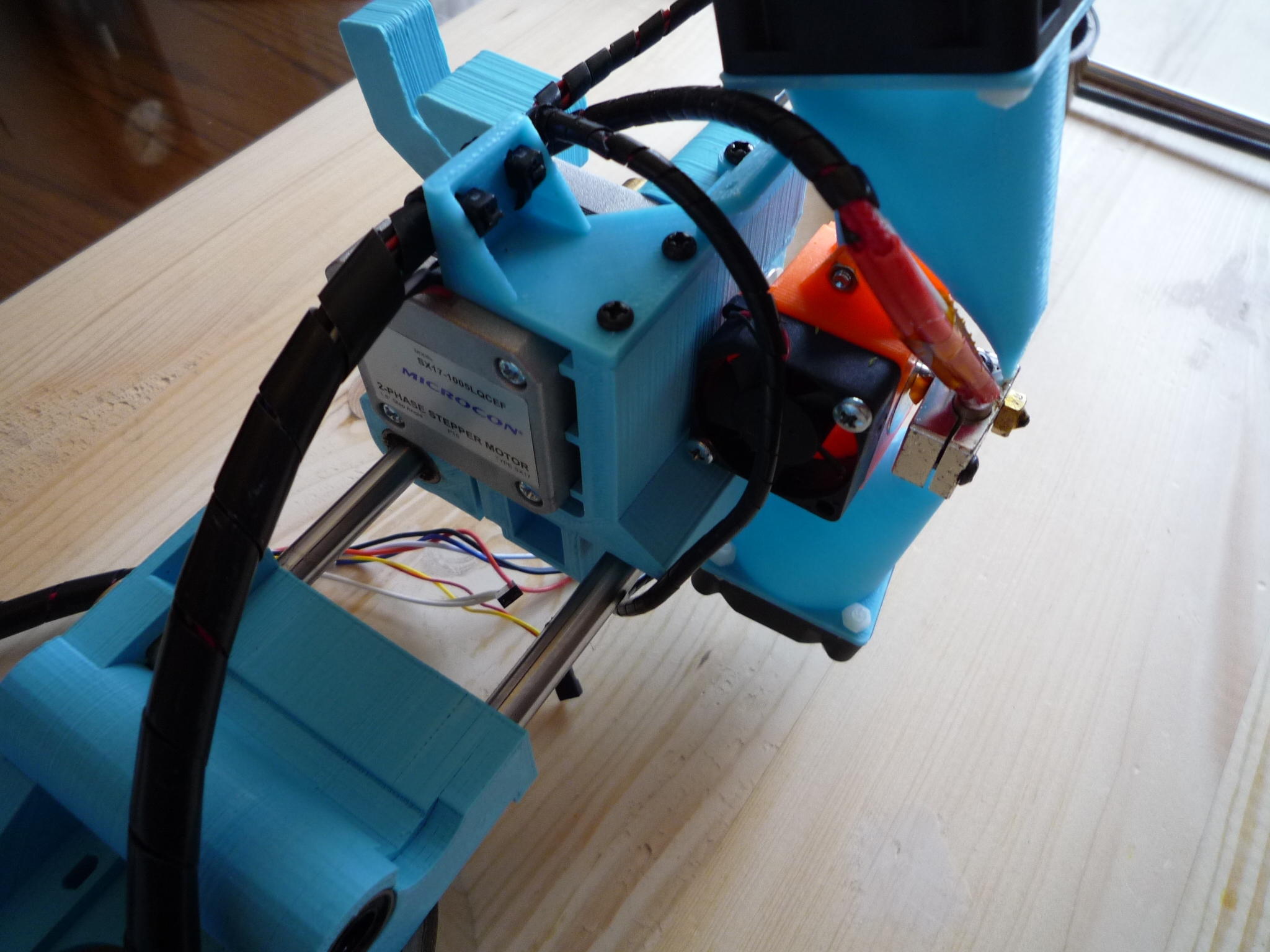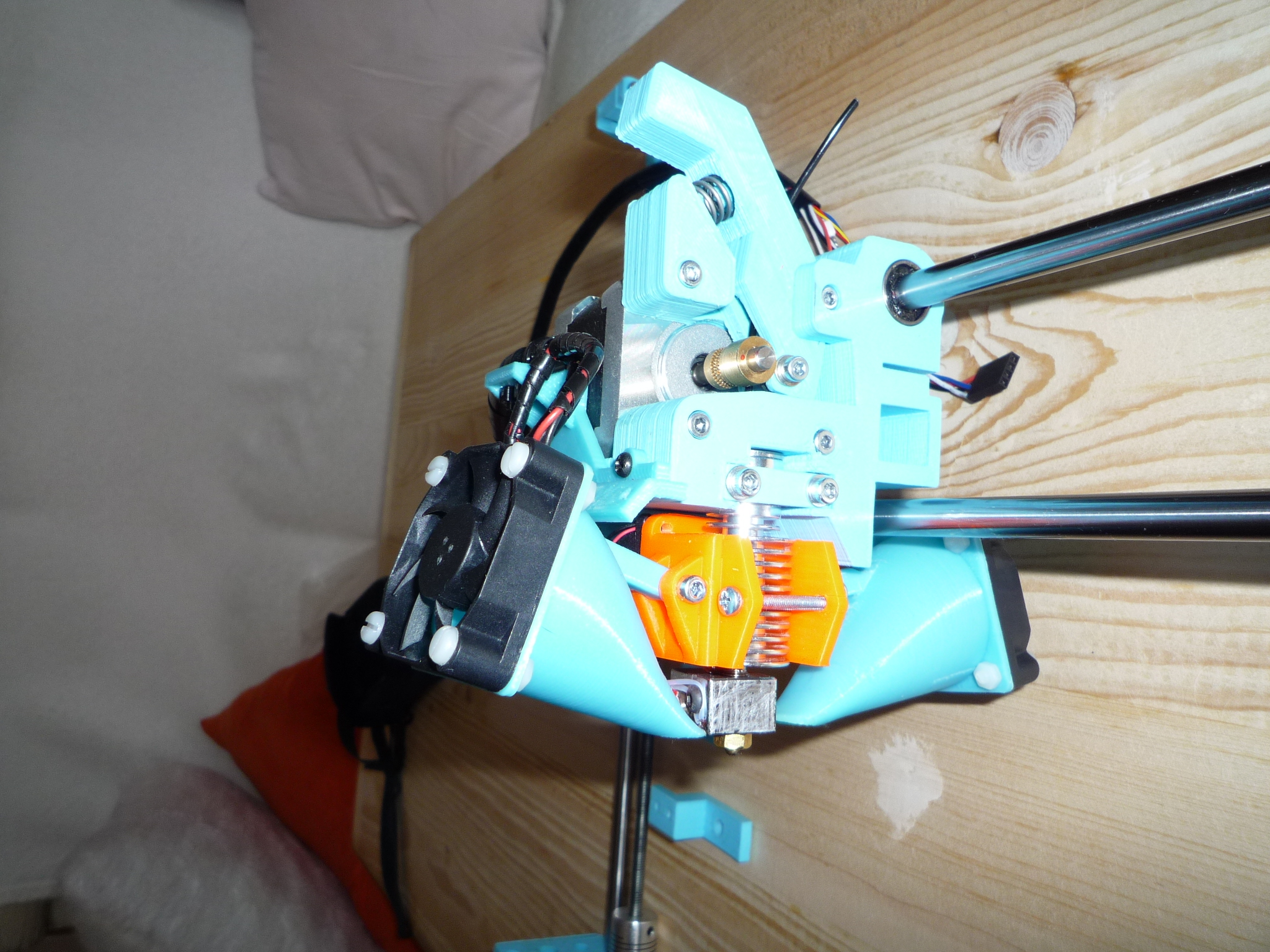 jedná se o komplet osu X vybavenou hybridním extrudérem E3D V6. Celé je to osazeno třemi ventilátory Maglev, posun s Mikrokom 1005 s mosaznou zubaticí. V hotendu je vyměněna teflonová trubička 3/2. Jinak je trubička snadno vyměnitelná. Celá sestava je na kalených tyčích s lineárními kuličkovými ložisky. Celý hotend je zapojen a osazen konektory tak, jak byl demontován Na pravém posuvu je soustružená kladka se dvěma ložisky. Osa Z je také na kalených tyčích s lineárními ložisky. Posun je také na kalených tyčích a tvrdé (žluté) šroubovice s vysoustruženými maticemi. Celá sestava byla v provozu asi půl roku a vytiskla cca 5kg materiálu. V příloze je několik ukázek a celá sestava. Prodávám za 1600.-Kč plus asi 100.-Kč poštovné. Je to cena za železo. tištěné díly přidávám grátis. Kromě hotendu je všechno původem ČR.