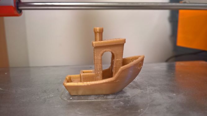 Vypadá to , že materiál víc teče, tak oproti PETG od Gembirdu jsem šel dolů s teoplotou z 235 n 225 a je to celkem OK. Retrakce je 2,2mm a rychlosti jsem trochu snížil, ale já jsem z PETG ještě 3D Benchy nezkoušel takže nevím jak moc to jde odladit. Jinak z oranžové jsem tisk pojezd extruderu na pro Titan a celkem v pohodě ale to jsem měl ještě větší teplotu, ted dělám do firmy takovou packu při 225 a vypadá dobře zítra sem dám foto. U lodičky vrstva 0,2 a není nijak čištěná.