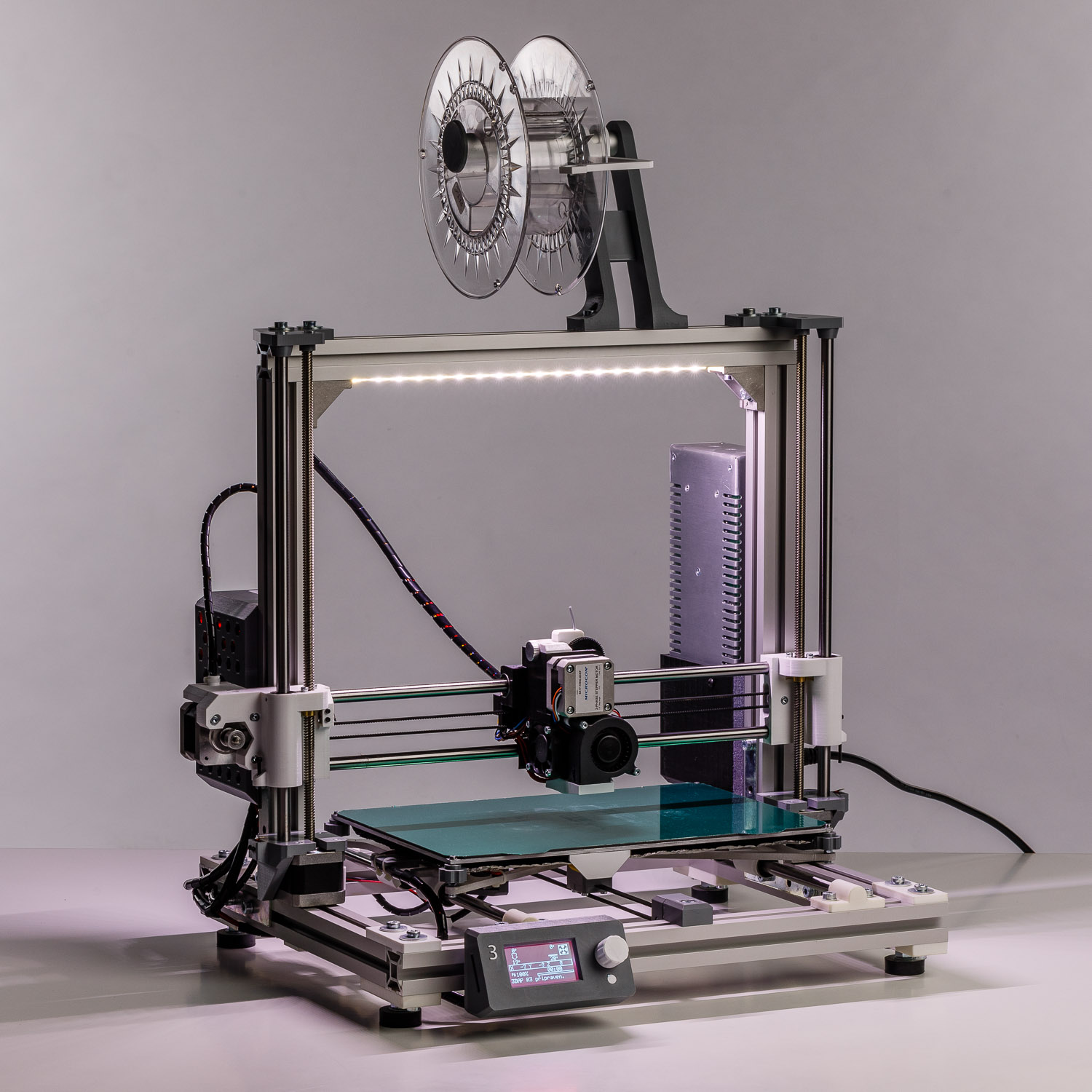 Trochu jsem jej upravil a snad i vylepšil. Je kompletní, v provozu a odladěný. Stačí tedy jen postavit na stůl, nahodit filament, SD kartu a začít tisknout.