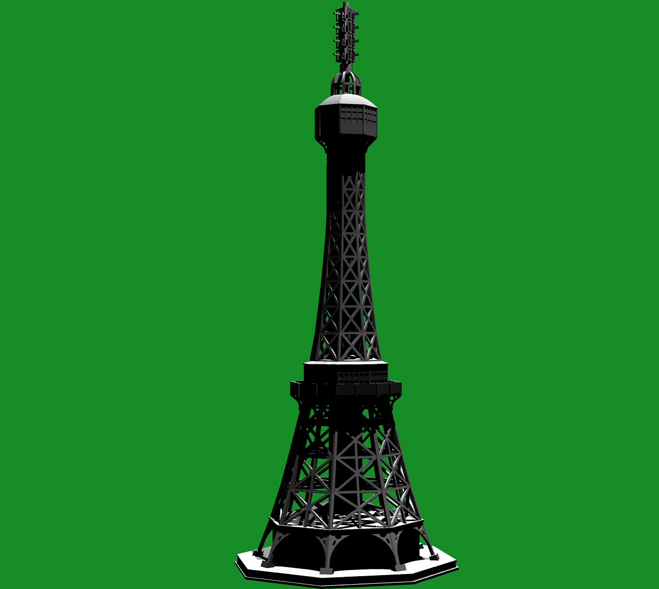 Nikde jsem nenašel vhodný 3D model Petřínské rozhledny (vhodný k tisku a zdarma), tak jsem si ho navrhl (Rhino 4) a vytiskl sám :)