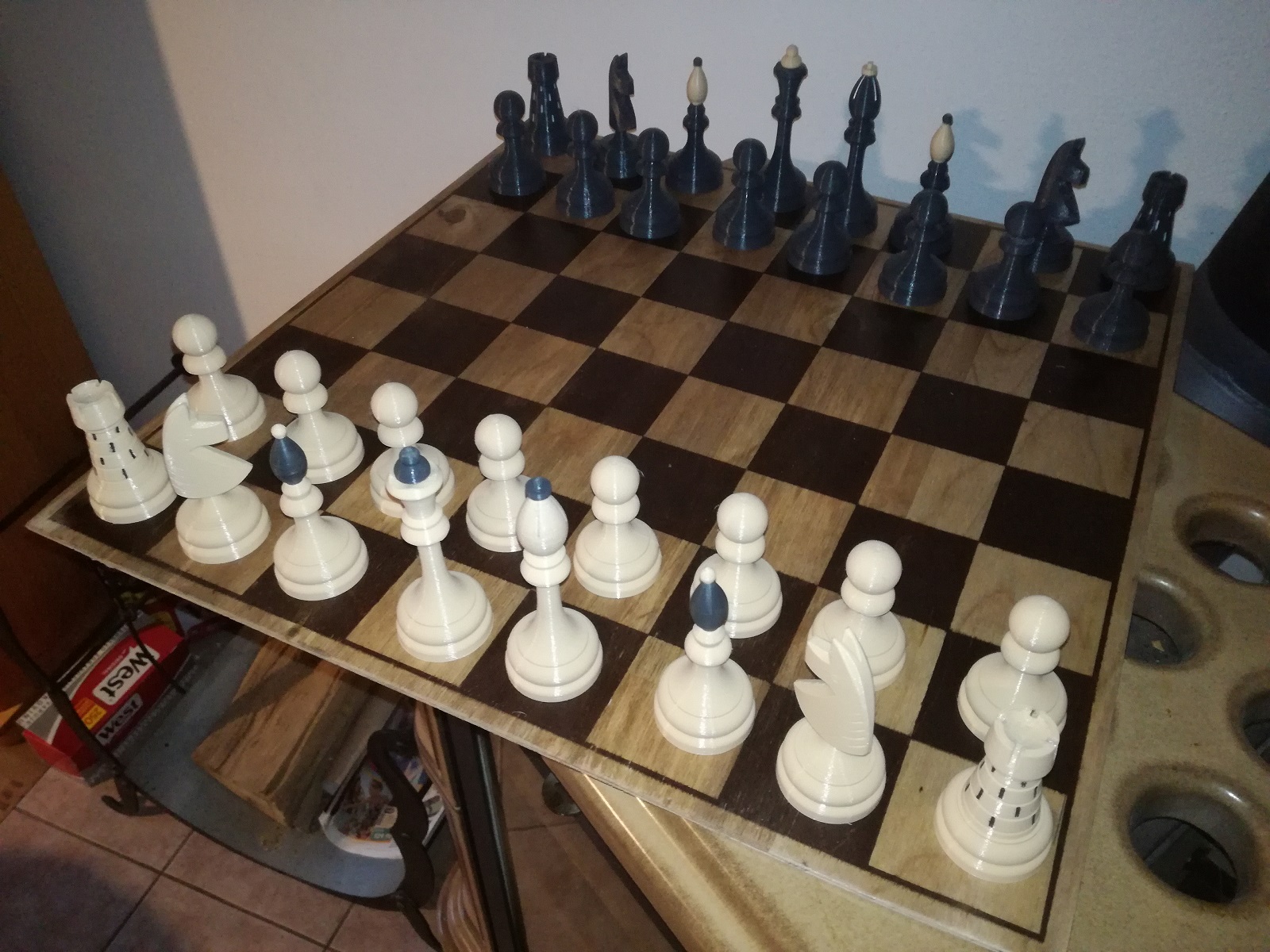 Tyhle šachy jsem původně chtěl dřevěné, pár sad jsem kdysi v dobách svého účinkování na modelárně ručně vytočil.