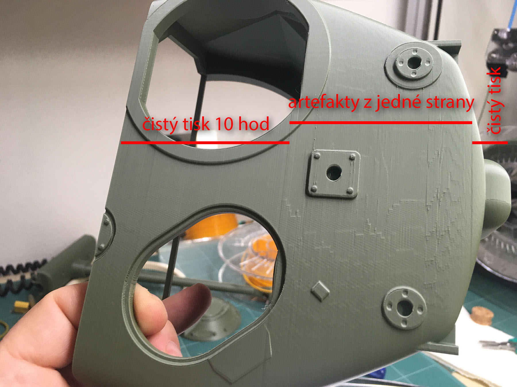 Zřejmě se sama aktivovala funkce Linear advance - extruder sebou škubal při změně směru tisku, evidentní zejména u výplní. Tato funkce je ale ve FW vypnutá, prvních pár hodin to tisklo skvěle.