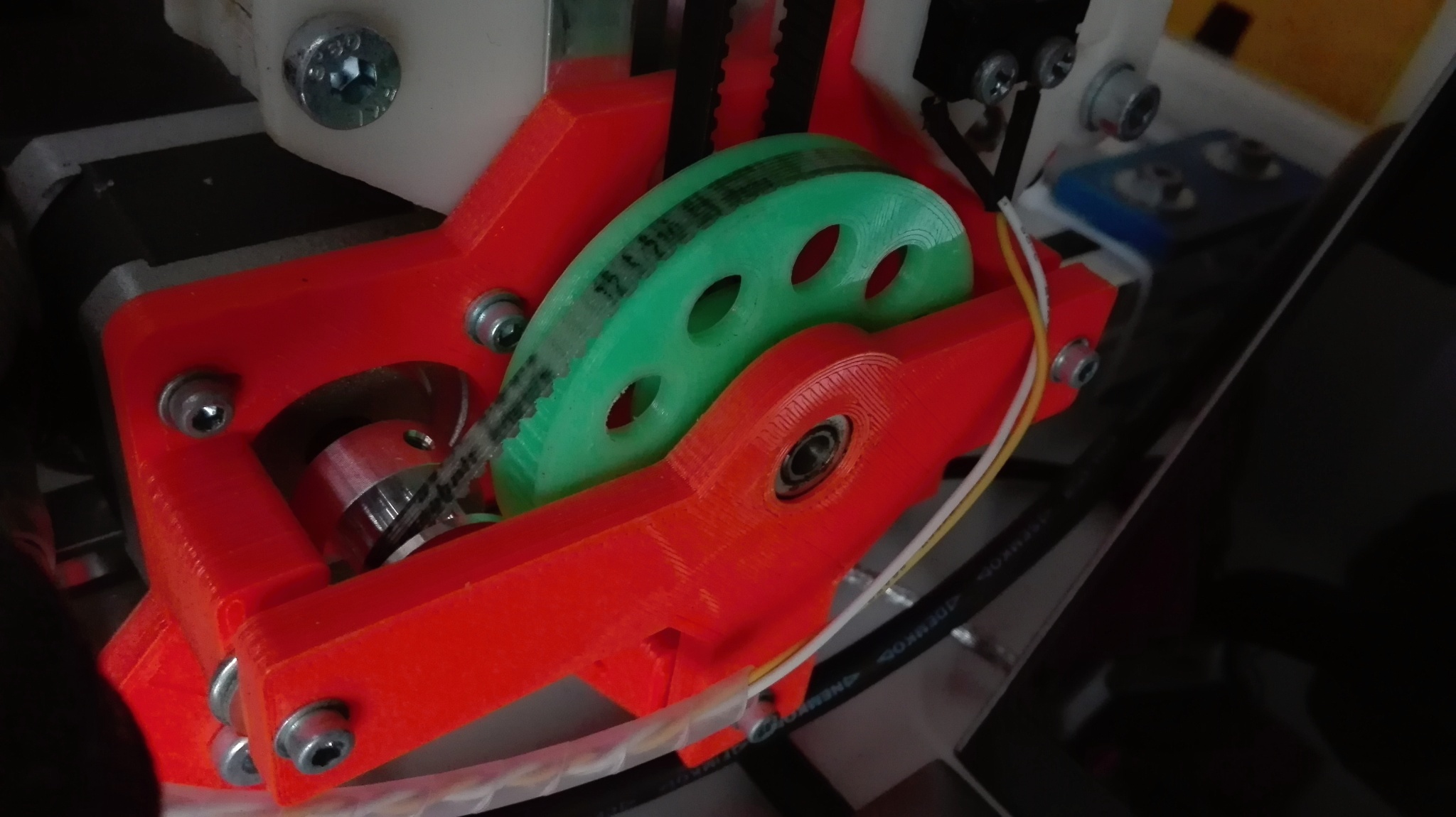 nasel sem na eBay nekonecne remeny 2GT-228 (114 zubu) (a maj i jine delky kolem 230mm), takze by mohlo jit vyuzit remenice GT2 se 16 nebo 20 zuby, co jsou pouzite vsude jinde. Osa si myslim pujde malinko posunout, pripadne predelat dil a otvory pro motor osy Z a nejspis kvuli sirce i kryt prevodu Z. Prevod bude samo malinko jinej, ale ne zase o tolik. Chci to zkusit, protoze to bude urcite lepsi nez to tistene ozubeni.