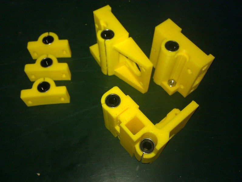 Po stržení otřepů a hran dílů, vložte ložiska LM8UU do otvorů v říslušných dílech. Pokud