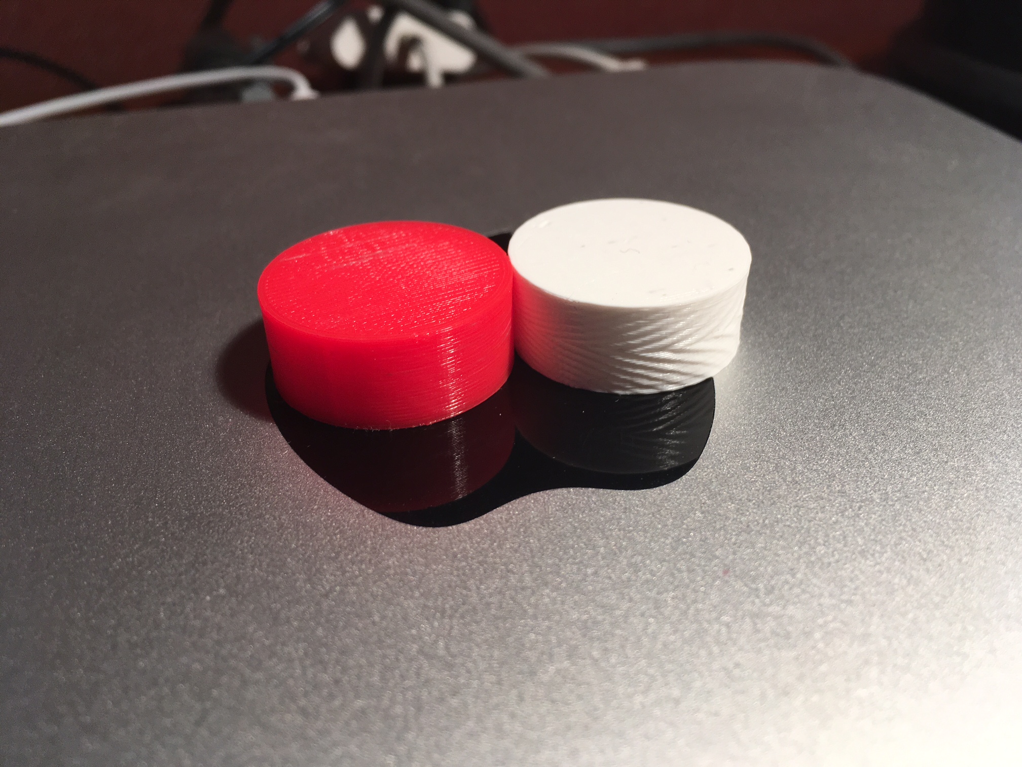 Zde je výtisk na identické nastavení z S3D (bílý) a Slic3ru (červený), S3D to prostě nedal: