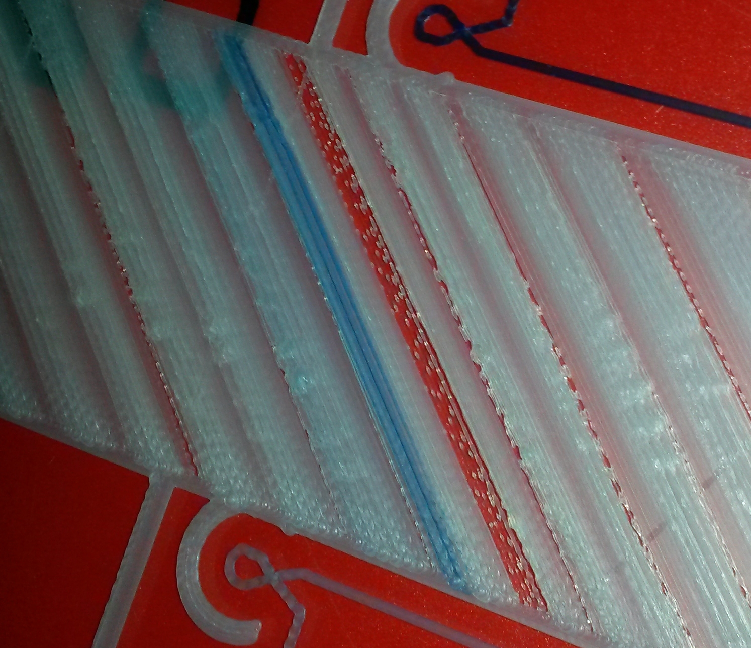 Teď jsem začal tisknout s modrým PLA Gembird a mám podobné problémy. Dochází k takovým malým přicpáváním a výpadkům. Když jsem dal po modré šedou, všechno bylo zas OK. Tedy až na jednu chvíli, kdy se přestalo cokoliv vytlačovat a pak vylezl kousek modré s míchané s šedou