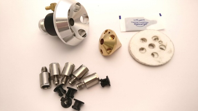 Jak je to ale u vodního chlazení, kde je vidět na místě tělíska vodní chladič? Není topení namotaný třeba z odporovýho drátu potaženýho teflonem mezi diamantem a tou chladící základnou s přívody bowdenů? Napovídá tomu ta omotávka nad diamantem.