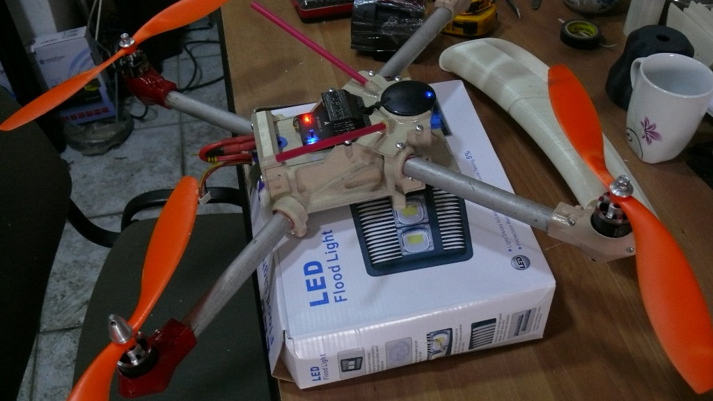 nedalo mě to a pustil jsem se do další koptéry. po pár letech s tricoptérou jsem zjistil že na to nemám ruce tak jsem je poslal dál. po roce jsem zase dostal chuť to vyzkoušet. moc se mě libí ramena z trubky ... bez FPV mě letová hmotnost vyšla na 402g