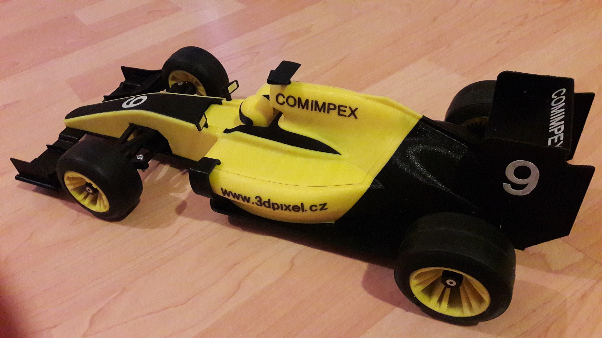 Tak jsem včera a dnes zkoušel jezdit s tištěnou formulí. A je to těžký zklamání, je tak do vitríny. Problém jsou gumy. Zkoušel jsem 3 různý typy. Na palubkách a dlaždičkách jsem měl gumy tištěný z mladečskýho TPE32 přetažený na radu Kroxigora páskama nastříhanejma z duše horskýho kola. Duše se dokáže natáhnout tak, že přesah je až k diskům, skoro to vypadá jako pravá slicka. Ale dost se to smeká a hrabe, na dříví to ještě jde, ale na dlaždičkách špatný, samej smyk.